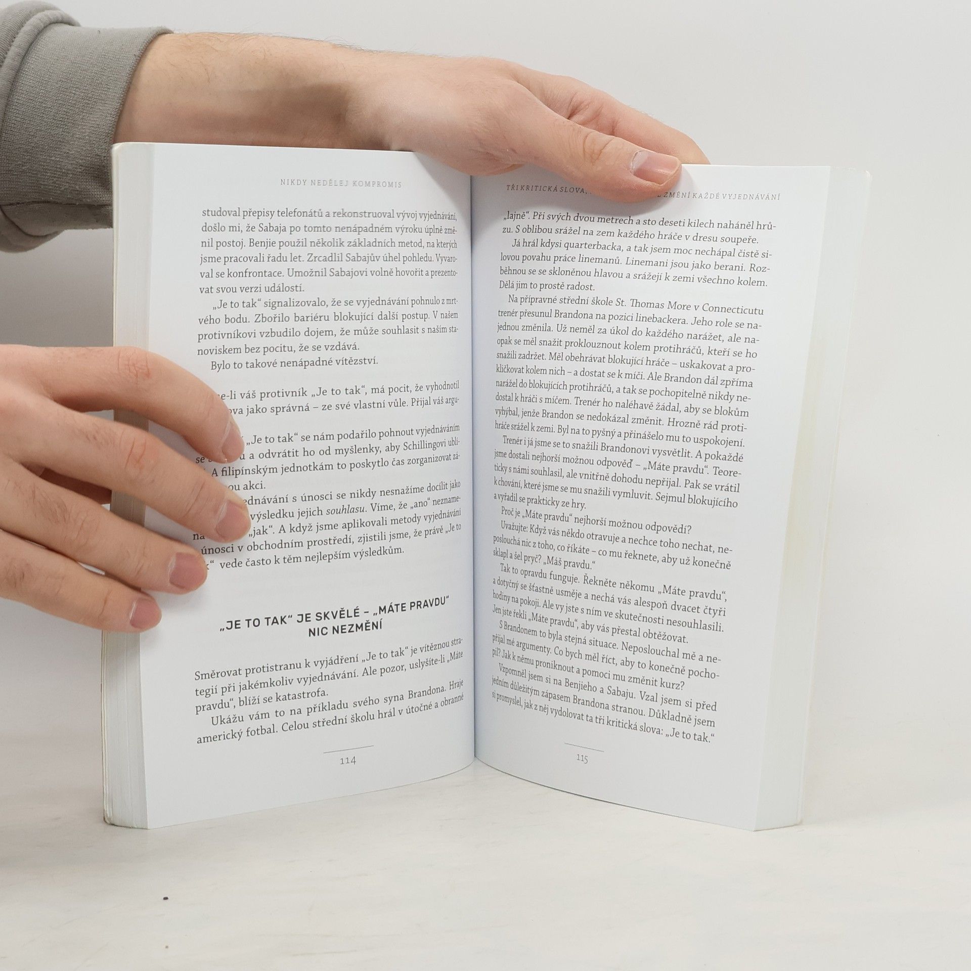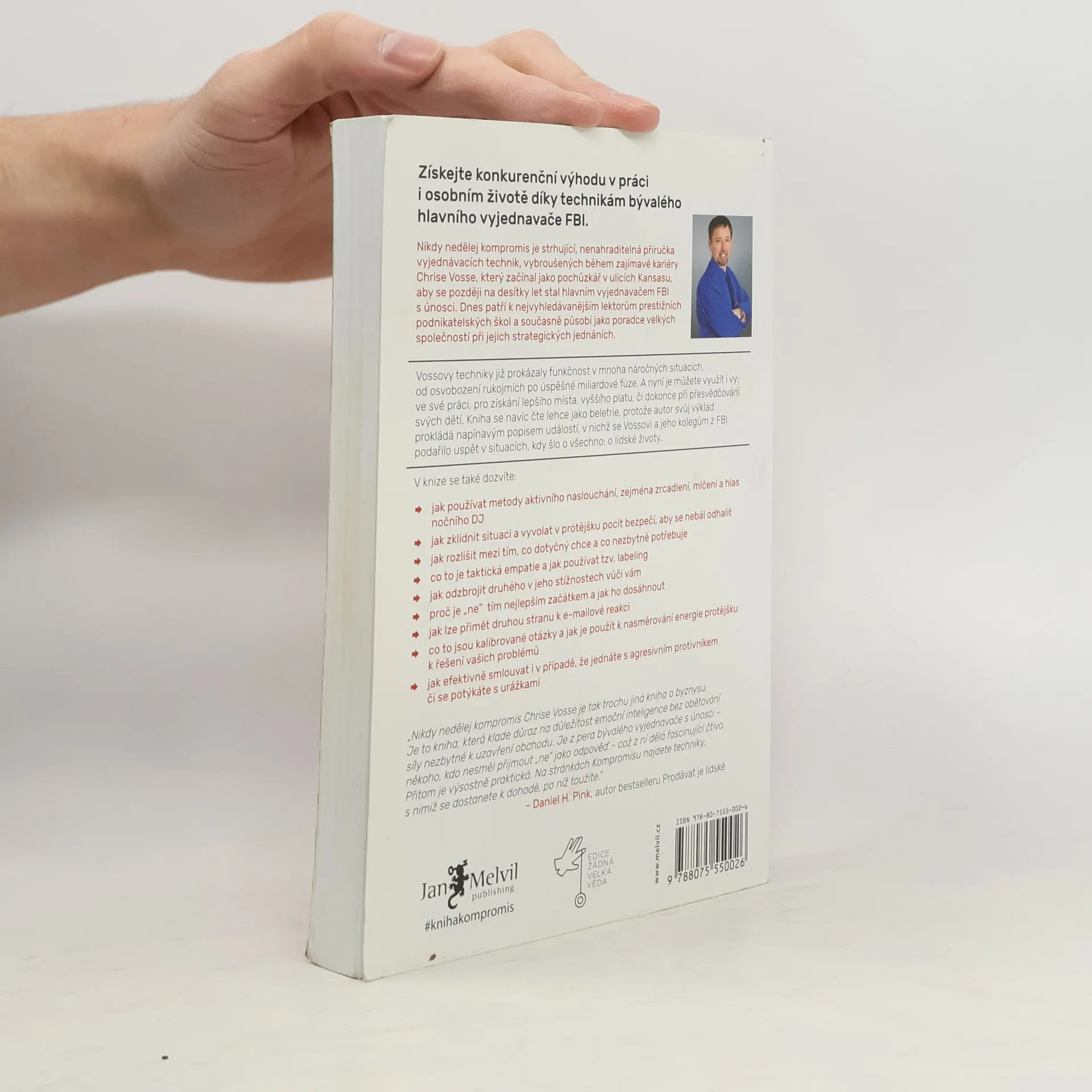 Život je plný vyjednávání, ať už se jedná o nákup auta, pořízení domu nebo sjednání podmínek s partnerem či dětmi. Klasické knihy jako Getting to Yes či Crucial Conversations obohatily arzenál vyjednavačů, avšak některé metody se ukázaly jako neefektivní a potřebují aktualizaci. Chris Voss, bývalý hlavní vyjednavač FBI, přináší nový, na neurovědě podložený přístup. Začínal jako běžný policista a postupně se vypracoval na specialistu na vyjednávání s nebezpečnými zločinci, kde šlo o lidské životy. V těchto situacích nelze dělat kompromisy. Vossův přístup, založený na dlouholeté praxi a výzkumech FBI, nenahrazuje předchozí metody, ale rozvíjí je a překonává. FBI jako první začala v jednáních pracovat s emocemi, zatímco dříve se vyučoval přístup založený na racionálním jednání obou stran. Po 25 letech ve FBI se Voss zaměřil na firemní vyjednávání a stal se vyhledávaným konzultantem, který asistuje u obchodních jednání Fortune 500 a přednáší na prestižních školách jako Harvard či MIT. Jeho kniha představuje významný a praktický příspěvek k tématu vyjednávání, které ovlivňuje naše osobní i pracovní životy.