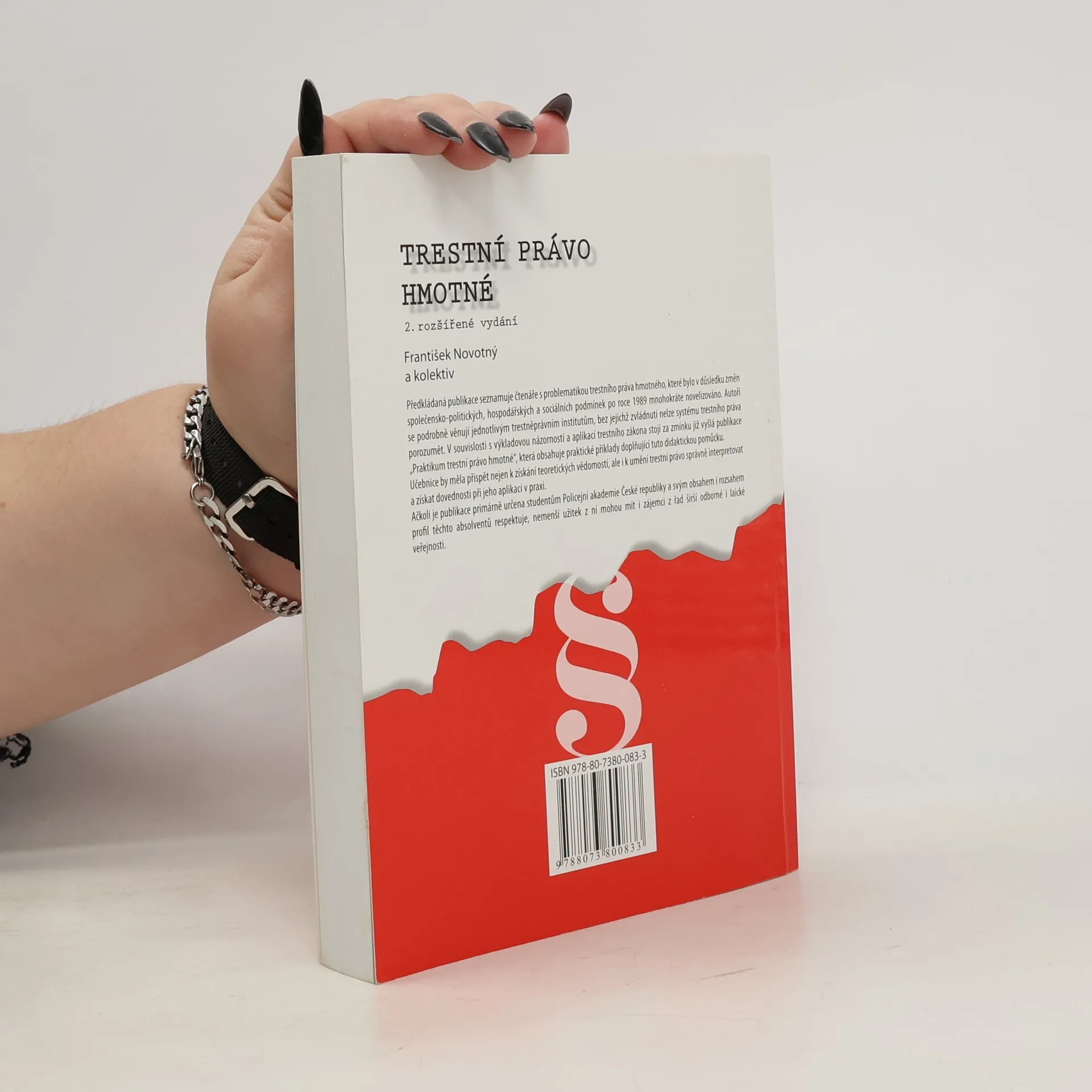 Učebnice trestního práva hmotného je zpracována v souvislosti s trestním zákoníkem č. 40/2009 Sb., ve znění pozdějších předpisů. Věnuje pozornost zejména základům trestní odpovědnosti, trestním sankcím, některým otázkám trestní odpovědnosti mládeže za protiprávní činy a postupu při právní kvalifikaci skutku. Obsahuje teoretické výklady a jejich aplikaci v praxi. Rozsah výkladu koresponduje s požadavky na profil absolventa Policejní akademie ČR v Praze. Spolu s publikací „Praktikum trestního práva hmotného“ tvoří základ pro studium trestního práva hmotného pro studenty bakalářských a magisterských studijních programů právnických i neprávnických vysokých škol, stejně tak může však být cenným zdrojem informací pro představitele laické i odborné veřejnosti a zástupce trestněprávní praxe.