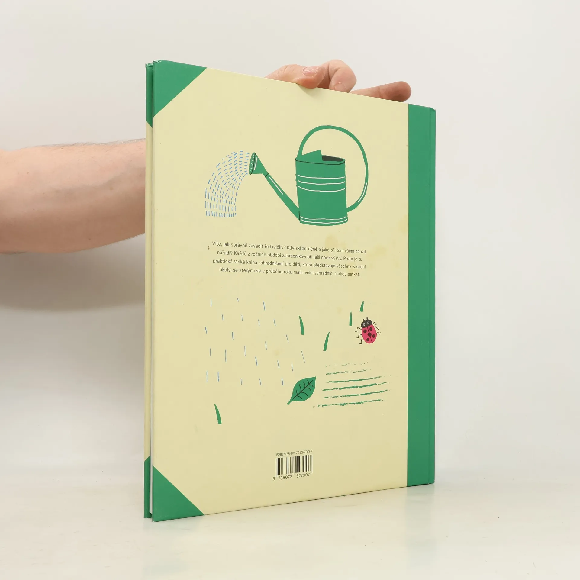 Ideální pomocník pro malé i velké zahradníky Víte, jak správně zasadit ředkvičky? Kdy sklidit dýně a jaké při tom všem použít nářadí? Každé z ročních období zahradníkovi přináší nové výzvy. Proto je tu praktická Velká kniha zahradničení pro děti, která s pomocí hravých ilustrací Elisy Géhin představuje všechny zásadní úkoly, se kterými se v průběhu roku malí i velcí zahradníci mohou setkat. Velkoformátová kniha rozdělená na 4 části (jaro, léto, podzim, zima) učí děti, jak vypěstovat a sklidit svou první úrodu a mít z ní co největší užitek. Nabádá je ale také k tomu, aby svět odehrávající se na našich zahradách a balkonech více vnímaly a obdivovaly. Budou proto třeba pozorovat pohyb květin při měsíčku nebo se učit rozeznávat jedlé volně rostoucí květiny. Z této knihy ovšem nebudou nadšené jen děti. Nabízí totiž velké množství tipů a rad zkušených zahradníků, které mohou být užitečné i pro dospělé zahrádkáře. Věděli jste například, že nejlepším opatřením proti slimákům, je vedle květiny položit kolečko okurky?