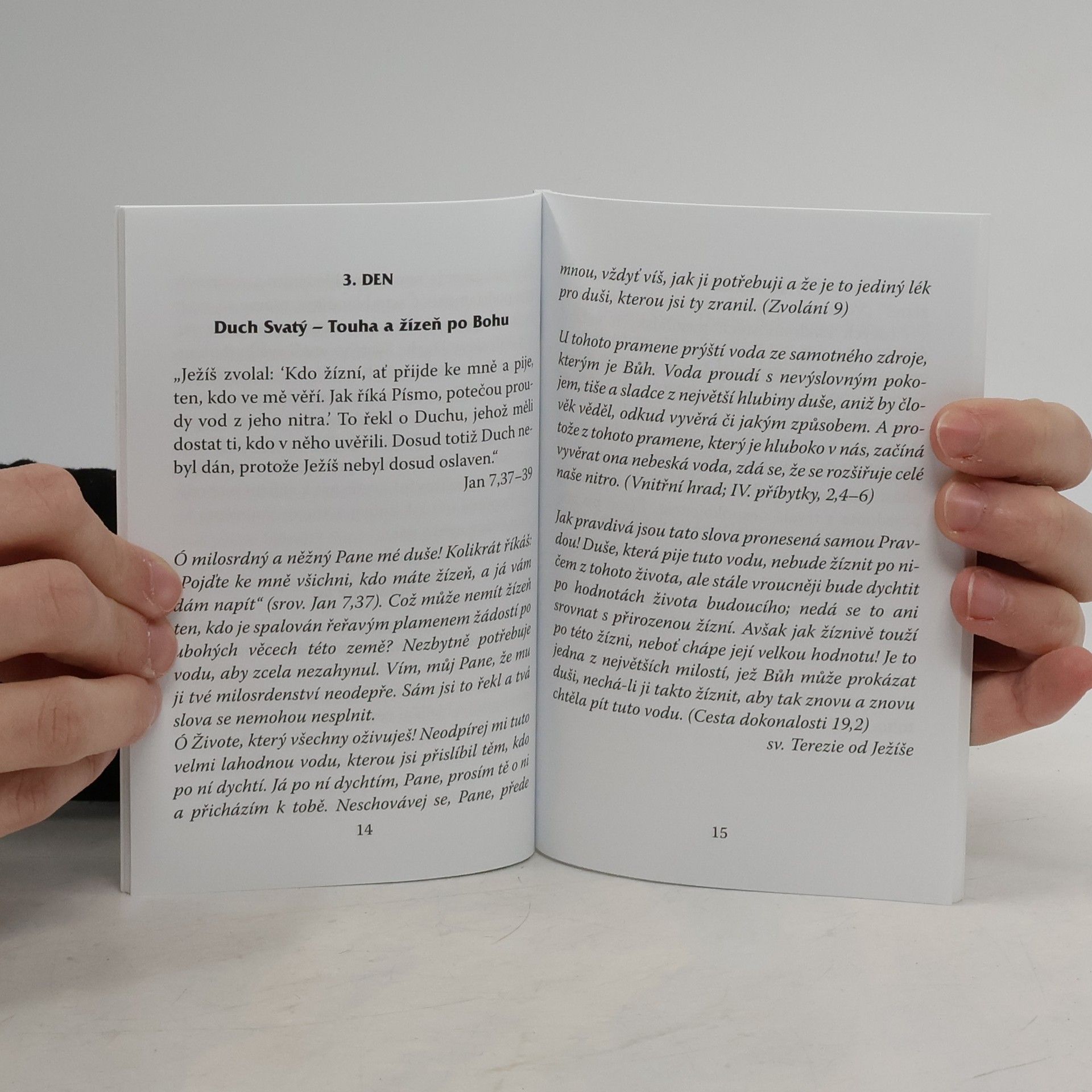 Novéna k Duchu Svatému s nádhernými texty velkých světců Karmelu (např. Terezie od Ježíše, Jan od Kříže, Miriam od Ukřižovaného, Alžběta od Trojice ad.).