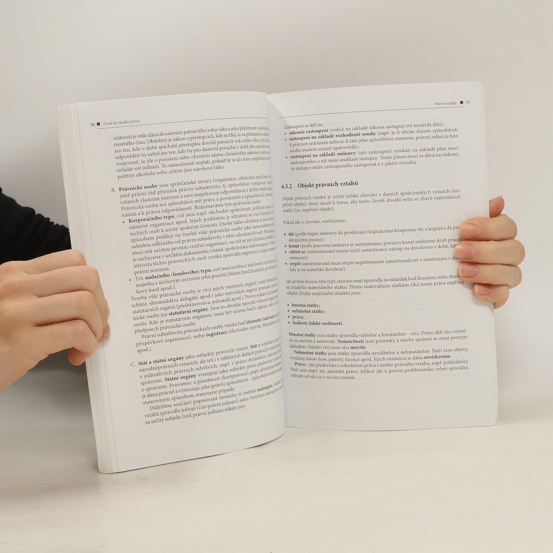 Nové vydání oblíbené publikace je aktualizováno s ohledem na nový občanský zákoník, platný od roku 2014. Největších změn doznala oblast procesního práva, konkrétně občanské soudní řízení. Novinky se promítly také například do definování veřejného a soukromého práva a do problematiky subjektů právních vztahů, závazkových právních vztahů a věcněprávních právních vztahů. Knížka jako celek srozumitelně seznamuje se základními pojmy a vývojem práva, zabývá se prameny práva, právními normami, systémem práva, právními vztahy a výkladem a uskutečňováním práva. Podrobněji se věnuje právní odpovědnosti, procesnímu právu a také ústavnímu pořádku občanů ČR. Publikace je určena zejména studentům základních kurzů práva na neprávnických veřejných a soukromých vysokých školách a vhodná je také pro zájemce z praxe
