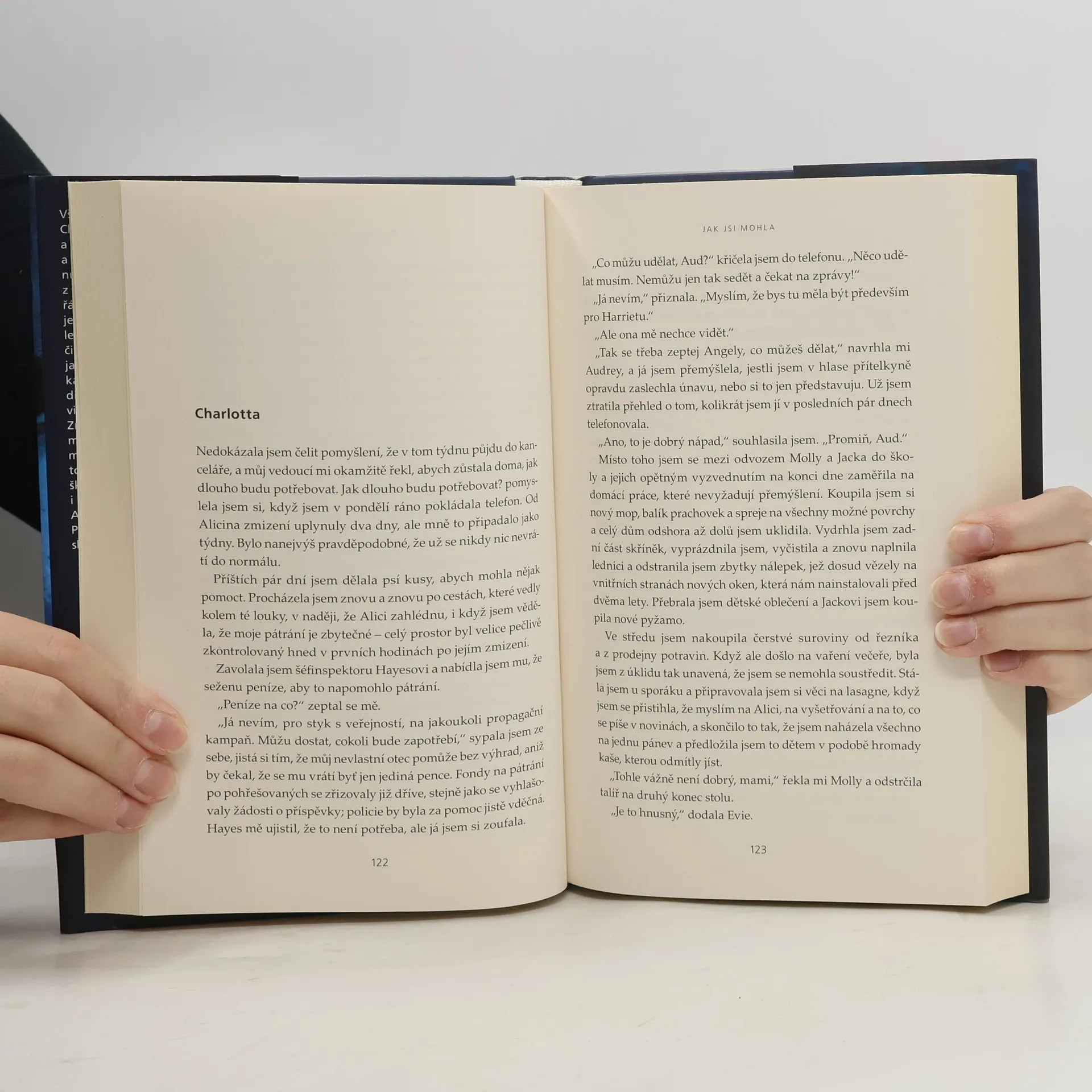 Všechno začalo na školní slavnosti. Charlotta měla dohlédnout na děti a přísahá, že na ně taky dohlížela a pustila je z očí jen na vteřinu. Když se však její tři děti vrátí z „cesty džunglí“ v naprostém pořádku a Alice, čtyřletá dcerka její nejlepší přítelkyně Harriety, není k nalezení, zmocní se jí panika. Horečně holčičku hledá, ale už je jasné, že musí sebrat odvahu a Harrietě oznámit, že se její jediné dítě pohřešuje. Musí také připustit, že vinu může dávat jen a jen sobě. Harrieta, zničená touto nesnesitelnou ztrátou, se už nedokáže přimět, aby s Charlottou promluvila, natož aby jí věřila. Jenže nyní to potřebuje, protože dva týdny po školní slavnosti vyslýchá Harrietu i Charlottu policie, každou zvlášť. A začnou se vynořovat tajemství. Pravdu o tom, co se Alici skutečně přihodilo, někdo skrývá…