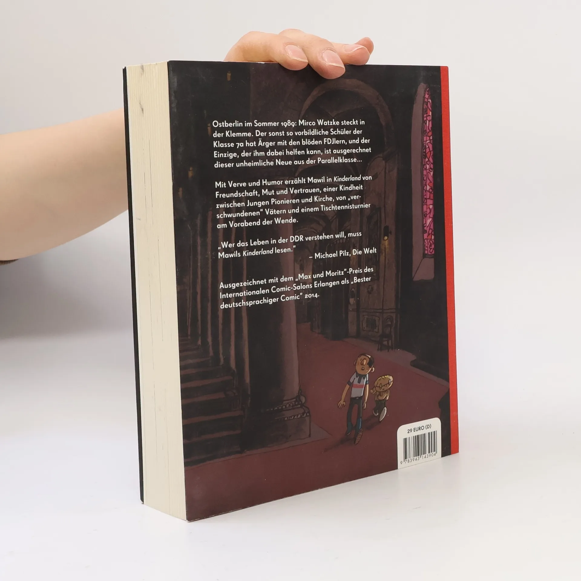 Sieben Jahre nach seinem letzten Buch „Action Sorgenkind“ meldet sich Mawil mit „Kinderland“ eindrucksvoll zurück und unterstreicht seinen Ruf als einer der versiertesten Comicautoren Deutschlands. In gewohnt charmanter, witziger und ungekünstelter Manier erzählt er in „Kinderland“ von Freundschaft, Mut und Vertrauen, einer Kindheit zwischen Jungen Pionieren und Kirche, von „verschwundenen“ Vätern und heimlich belauschtem Getuschel übers „Rübermachen“, von der „Angabe des Todes“ und einem Tischtennisturnier am Vorabend der Wende. Pünktlich zum 25. Jahrestag des Mauerfalls legt Mawil mit „Kinderland“ ein ebenso tiefgründiges wie rasant-unterhaltsames Buch vor, das aufgrund persönlicher Erinnerungen und sorgfältiger Recherche ein lebhaftes Bild der letzten Tage der DDR zeichnet und all das in sich eint, womit Mawil die Herzen der Leser wie der Kritik nachhaltig erobert hat.