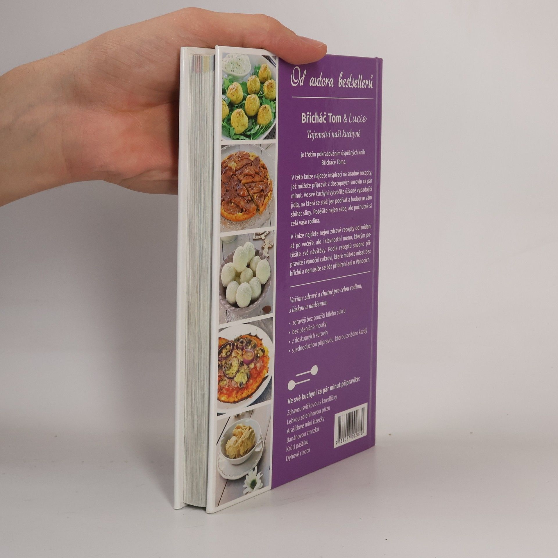 Je třetím pokračováním úspěšných knih Břicháče Toma. V této knize najdete inspiraci na snadné recepty, jež můžete připravit z dostupných surovin za pár minut. Ve své kuchyni vytvoříte úžasně vypadající jídla, na která se stačí jen podívat a budou se vám sbíhat sliny. Potěšíte nejen sebe, ale pochutná si celá vaše rodina. V knize najdete nejen zdravé recepty od snídaní až po večeře, ale i slavnostní menu, kterým potěšíte své návštěvy. Podle receptů snadno připravíte i vánoční cukroví, které můžete mlsat bez hříchů a nemusíte se bát přibírání ani o Vánocích. Vaříme zdravě a chutně pro celou rodinu, s láskou a nadšením. - zdravěji bez použití bílého cukru - bez pšeničné mouky - z dostupných surovin - s jednoduchou přípravou, kterou zvládne každý Ve své kuchyni za pár minut připravíte: - Zdravou svíčkovou s knedlíčky - Lehkou zeleninovou pizzu - Arašídové mini řízečky - Banánovou zmrzku - Krůtí paštiku - Dýňové rizoto