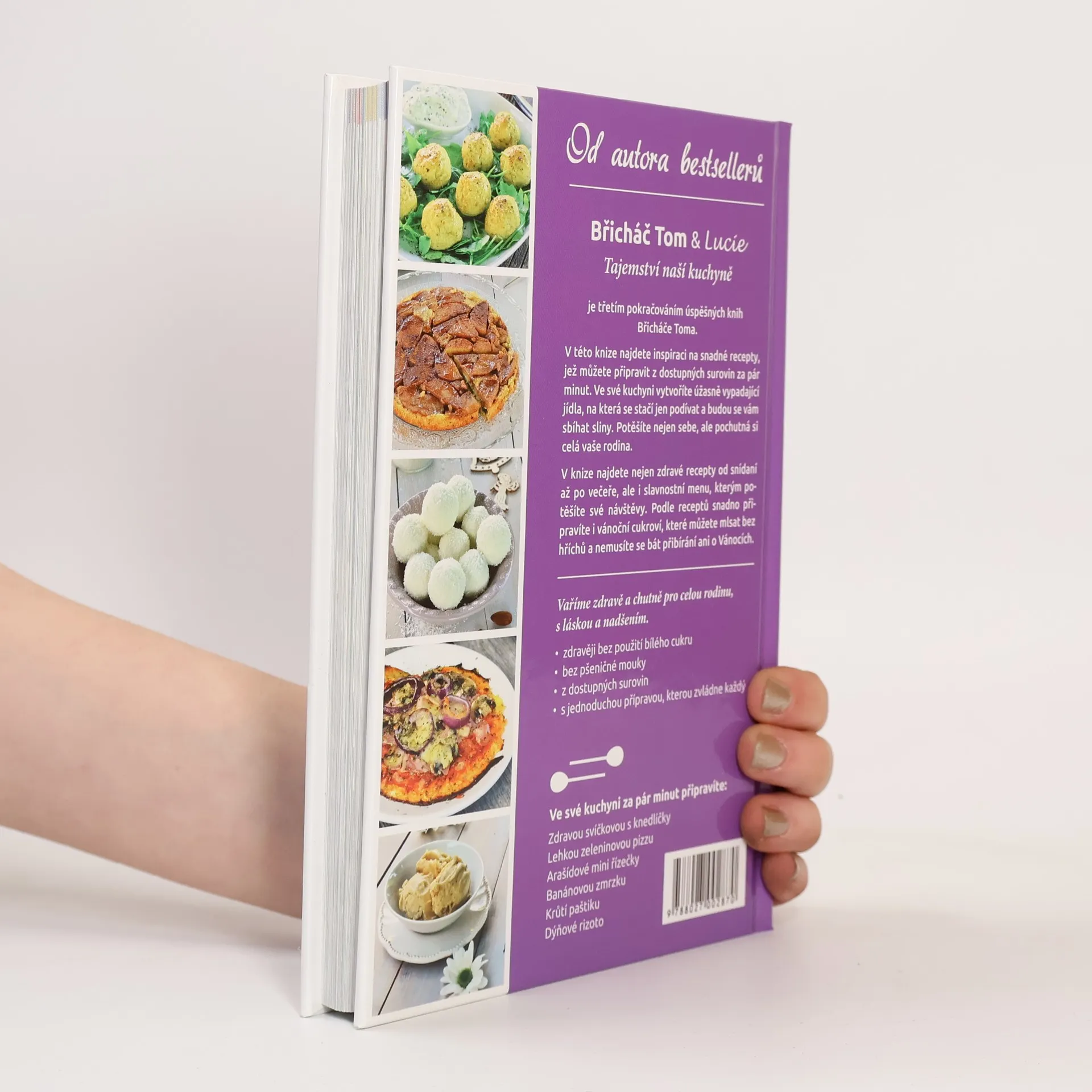 Je třetím pokračováním úspěšných knih Břicháče Toma. V této knize najdete inspiraci na snadné recepty, jež můžete připravit z dostupných surovin za pár minut. Ve své kuchyni vytvoříte úžasně vypadající jídla, na která se stačí jen podívat a budou se vám sbíhat sliny. Potěšíte nejen sebe, ale pochutná si celá vaše rodina. V knize najdete nejen zdravé recepty od snídaní až po večeře, ale i slavnostní menu, kterým potěšíte své návštěvy. Podle receptů snadno připravíte i vánoční cukroví, které můžete mlsat bez hříchů a nemusíte se bát přibírání ani o Vánocích. Vaříme zdravě a chutně pro celou rodinu, s láskou a nadšením. - zdravěji bez použití bílého cukru - bez pšeničné mouky - z dostupných surovin - s jednoduchou přípravou, kterou zvládne každý Ve své kuchyni za pár minut připravíte: - Zdravou svíčkovou s knedlíčky - Lehkou zeleninovou pizzu - Arašídové mini řízečky - Banánovou zmrzku - Krůtí paštiku - Dýňové rizoto