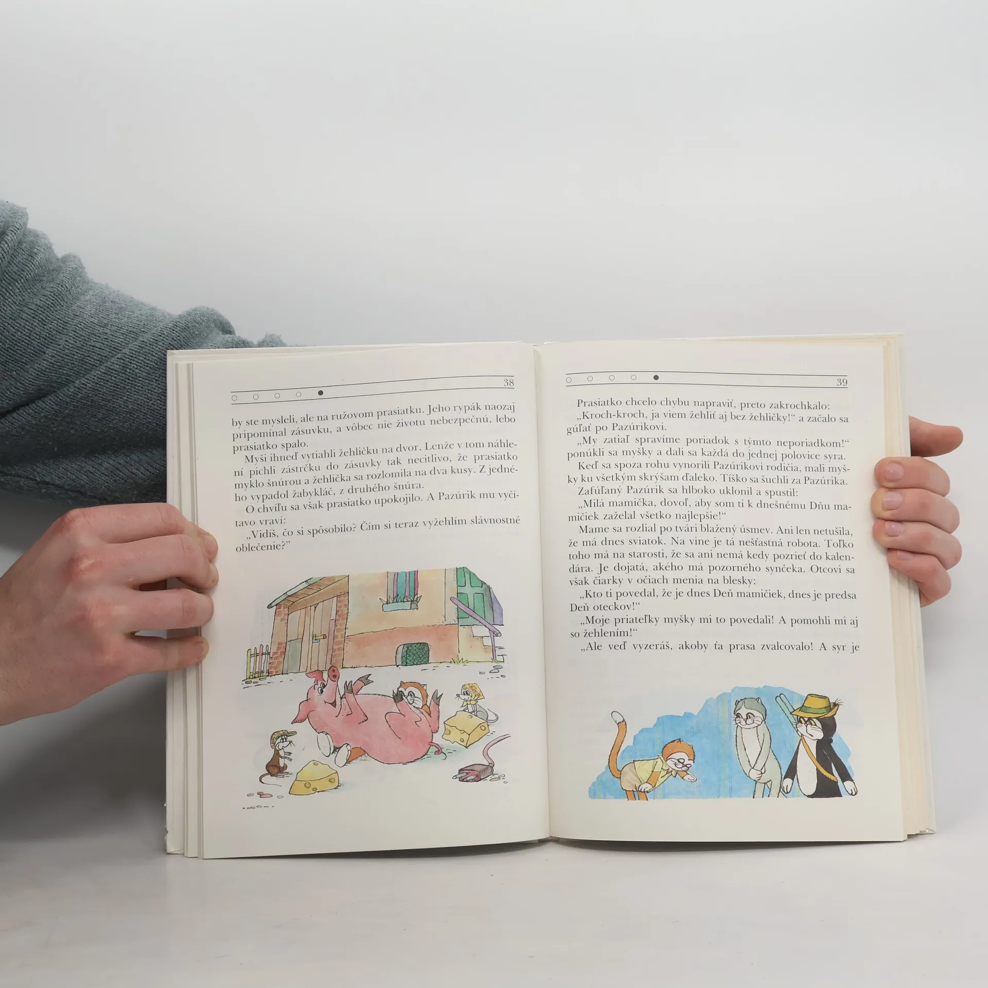 Trinásť veselých príhod kocúrika Pazúrika a jeho priateliek myšiek, napísaných podľa obľúbených televíznych večerníčkov. Rozprávky: Ako myšky šťastne prežili s kocúrikom Pazúrikom zemetrasenie, Ako myšky načisto vyčistili slaninu, Ako kocúrik Pazúrik pri myškách schudobnel ako kostolná myš, Ako priateľky myšky zatočili s nepriateľom Pazúrikom, Ako sa myši pomstili oteckovi Pazúrovi dňom mamičiek, Ako sa myšky hrali s kocúrikom na schovávačku, Ako sa kocúrikovi zmyšili jaterničky, Ako kocúrik Pazúrik poslal sardinky zabaviť sa do brušiek plných muziky, Ako myšky poradili kocúrikovi Pazúrikovi, ako urobiť dieru do sveta, Ako myšky naliali kocúrikovi Pazúrikovi rozumu, Ako myšky pomerne rýchlo vyškolili kocúrika Pazúrika na doktora, Ako kocúrik Pazúrik zapchal uhľovou kresbou myšiu dieru, Ako myšky premenili kocúrika Pazúrika na muža.