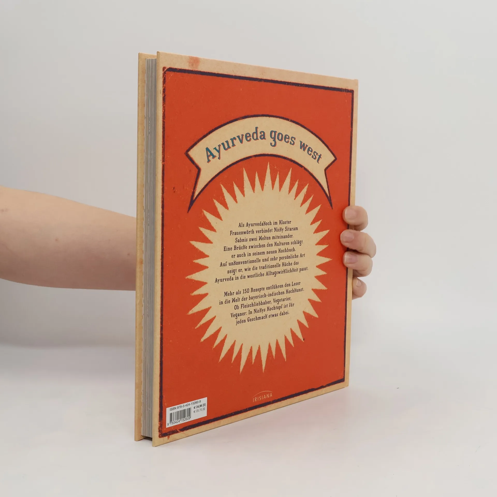 Ayurveda goes west „Indien ist mei Land, aber Bayern ist mei Heimat“ – als Ayurvedakoch im Kloster Frauenwörth verbindet Nicky Sitaram Sabnis zwei Welten miteinander. Eine Brücke zwischen den Kulturen schlägt er auch in seinem neuen Kochbuch. Auf unkonventionelle und sehr persönliche Art zeigt der bayerische Hindu, wie die traditionelle Küche des Ayurveda in die westliche Alltagswirklichkeit passt. Mit mehr als 150 köstlichen Rezepten entführt er den Leser in die Welt der bayerisch-indischen Kochkunst. Ob Kurkumafreund oder Curryverächter, Fleischliebhaber, Vegetarier, Veganer: In Nickys Kochtopf ist für jeden Geschmack etwas dabei. Daneben beschreibt er die Grundlagen der ayurvedischen Lehre und bringt dem Leser seine Lebensphilosophie nahe, erzählt von seinen Erfahrungen als Leiter der Ayurveda-Seminarküche in Frauenwörth und von seinem bewegten Leben. Ausstattung: ca. 100 Farbfotos