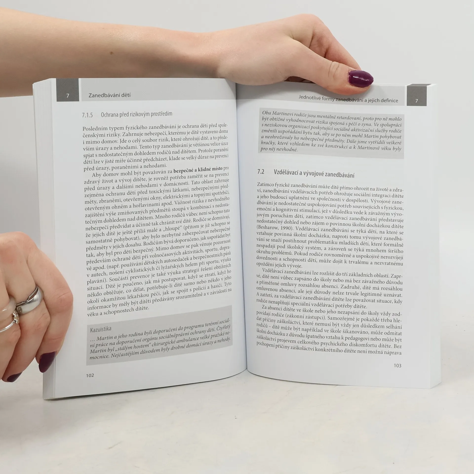 Zanedbávání dětí je oproti jiným formám nevhodného chování vůči dětem velmi specifické. Jeho identifikace bývá velice problematická a někdy k ní nemusí dojít vůbec. Dítě se tak může dlouhou dobu nacházet v tíživé situaci, kdy nejsou dostatečným způsobem uspokojovány jeho potřeby. Následky takovýchto případů mohou být pak nesmírně závažné, v některých případech i celoživotní. Vzhledem k těmto charakteristikám zůstává zanedbávání velmi často skryto. Přes svoji závažnost je však často opomíjeno i v odborné literatuře. Tato publikace se jako první v České republice věnuje problematice zanedbávání systematicky, a to z hlediska příčin a důsledků na život a vývoj dětí, ale řeší též možnosti hodnocení a intervence. Uvedeny jsou také původní nálezy autorů knihy a jejich pohled na zanedbávání, včetně statistických informací o této problematice z České republiky. Publikace představuje komplexní zdroj informací o zanedbávání dětí, který využijí všichni odborníci pohybující se v oblasti sociálněprávní ochrany dětí, tedy zvláště sociální pracovníci, psychologové, právníci, lékaři, ale samozřejmě též studenti těchto oborů nebo zájemci o danou problematiku.