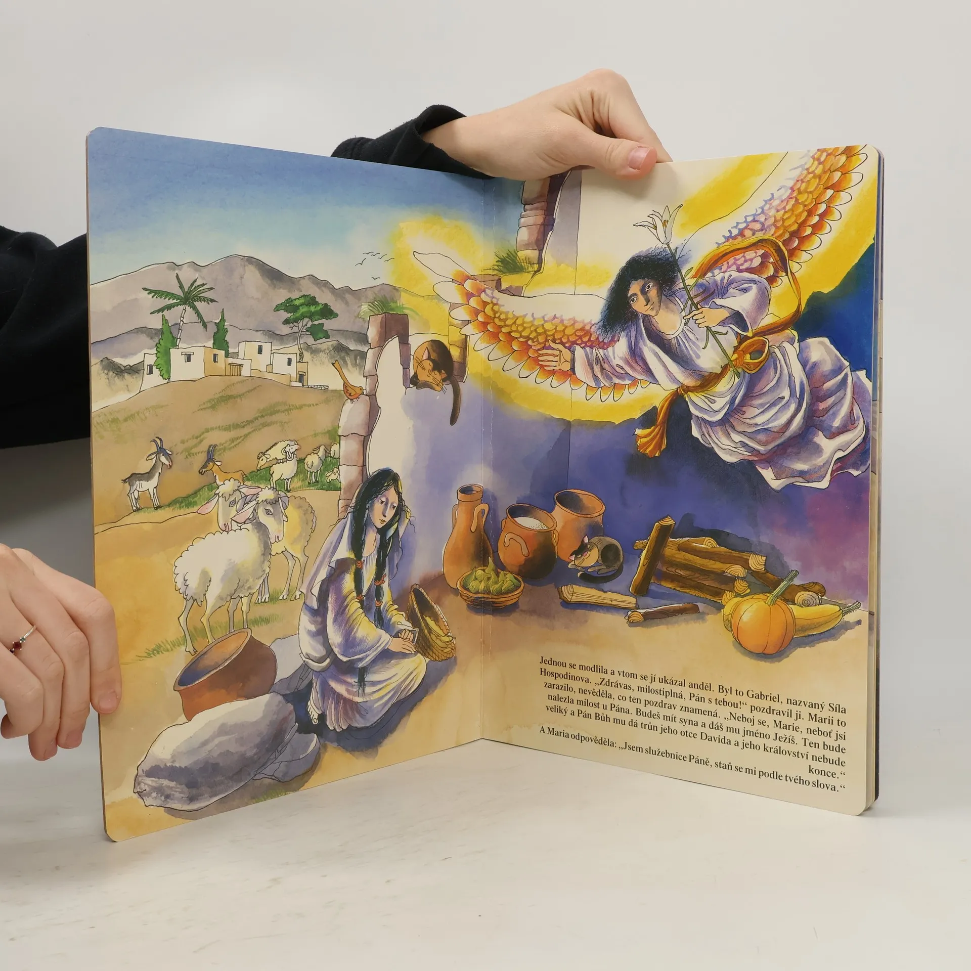 Příběh narození Krista převyprávěný krátkým textem s velkými celostránkovými obrázky je určen mladším školákům.