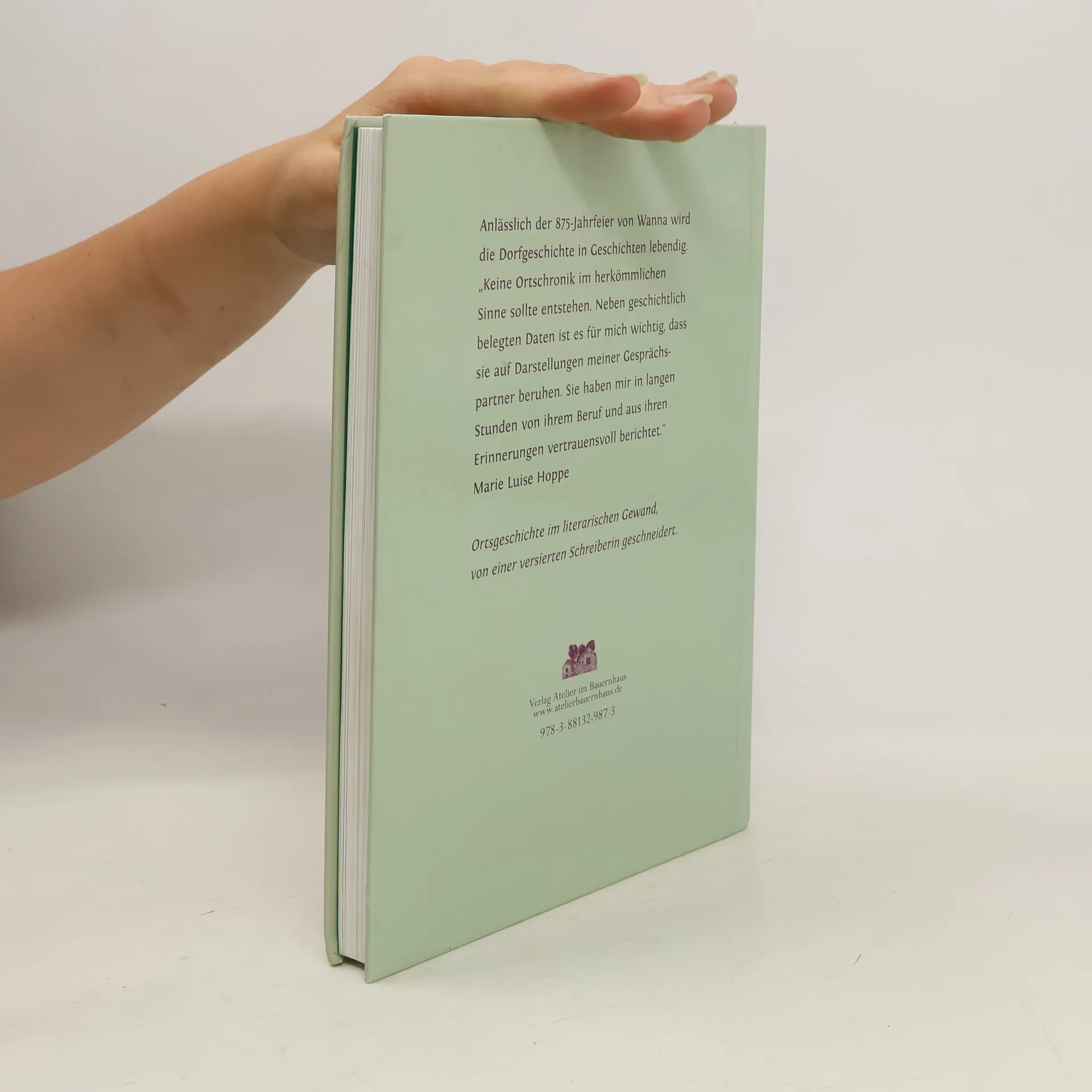 Anlässlich der 875-Jahrfeier von Wanna wird die Dorfgeschichte in Geschichten lebendig. Die Autorin Marie-Luise Hoppe: „Keine Ortschronik im herkömmlichen Sinne sollte entstehen. Neben geschichtlich belegten Daten ist es für mich wichtig, dass sie auf Darstellungen meiner Gesprächspartner beruhen. Sie haben mir in langen Stunden von ihrem Beruf und aus ihren Erinnerungen vertrauensvoll berichtet.“