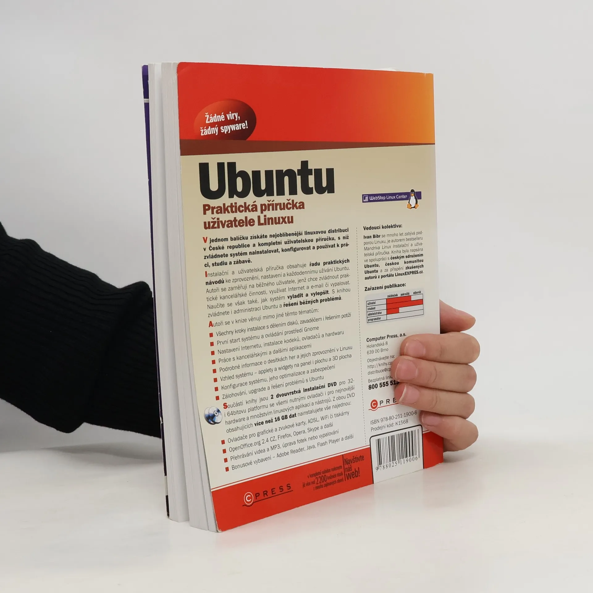 V jednom balíčku získáte nejoblíbenější linuxovou distribuci v České republice a kompletní uživatelskou příručku, s níž zvládnete systém nainstalovat, konfigurovat a používat k práci, studiu a zábavě. Instalační a uživatelská příručka obsahuje řadu praktických návodů ke zprovoznění, nastavení a každodennímu užívání Ubuntu. Autoři se zaměřují na běžného uživatele, jenž chce zvládnout praktické kancelářské činnosti, využívat Internet a e-mail či vypalovat. Naučíte se však také, jak systém vyladit a vylepšit. S knihou zvládnete i administraci Ubuntu a řešení běžných problémů.
