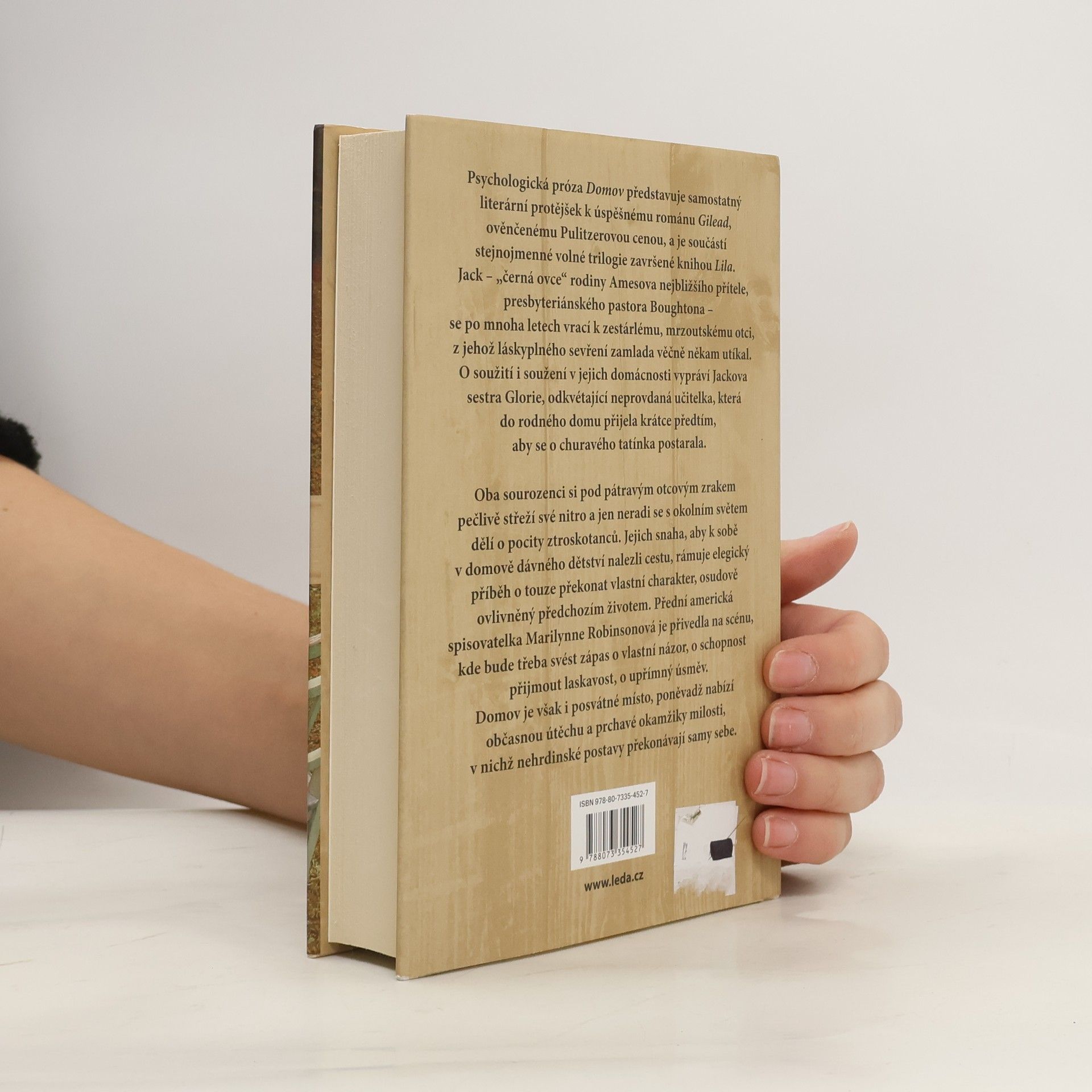 Psychologická próza Domov představuje samostatný literární protějšek k úspěšnému románu Gilead, ověnčenému Pulitzerovou cenou, a je součástí stejnojmenné volné trilogie završené knihou Lila. Jack – „černá ovce“ rodiny Amesova nejbližšího přítele, presbyteriánského pastora Boughtona – se po mnoha letech vrací k zestárlému, mrzoutskému otci, z jehož láskyplného sevření zamlada věčně někam utíkal. O soužití i soužení v jejich domácnosti vypráví Jackova sestra Glorie, odkvétající neprovdaná učitelka, která do rodného domu přijela krátce předtím, aby se o churavého tatínka postarala. Oba sourozenci si pod pátravým otcovým zrakem pečlivě střeží své nitro a jen neradi se s okolním světem dělí o pocity ztroskotanců. Jejich snaha, aby k sobě v domově dávného dětství nalezli cestu, rámuje elegický příběh o touze překonat vlastní charakter, osudově ovlivněný předchozím životem. Přední americká spisovatelka Marilynne Robinsonová je přivedla na scénu, kde bude třeba svést zápas o vlastní názor, o schopnost přijmout laskavost, o upřímný úsměv. Domov je však i posvátné místo, poněvadž nabízí občasnou útěchu a prchavé okamžiky milosti, v nichž nehrdinské postavy překonávají samy sebe.