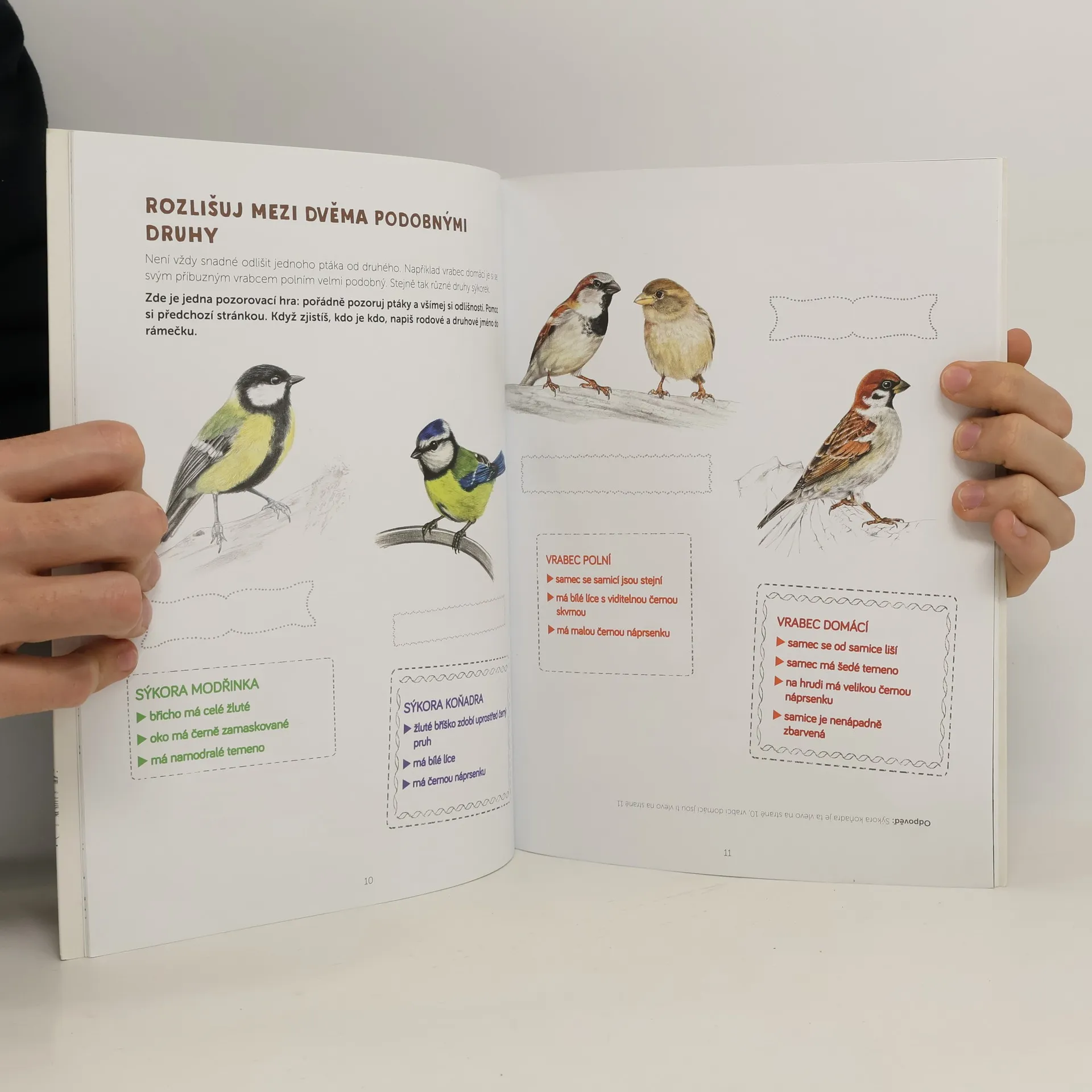 Tento pracovní sešit je jiný než ostatní. Vyzývá tě k hledání a pozorování ptáků žijících kolem tebe. Není nic jednoduššího, jelikož ptáci jsou všude, dokonce i ve městě. Stačí se k nim nenápadně přiblížit a můžeš pozorovat jejich svět. Bez ptáků si přírodu, ba ani město, nelze představit. Tento sešit ti pomůže je lépe znát a více se o ně zajímat. A jelikož se lépe chrání to, co známe a máme rádi, možná se pak také přičiníš a vykonáš něco, co ptákům pomůže. Zatřepotání křídly, pípání ve větvích… Stačí zvednout oči a hned někde spatříš nějakého ptáka. Ale víš, který to je? Díky aktivitám a hrám v tomto sešitě objevíš jejich způsob života a naučíš se je snadno rozpoznat! Taky se přičiň a jednej chraň ptáky.