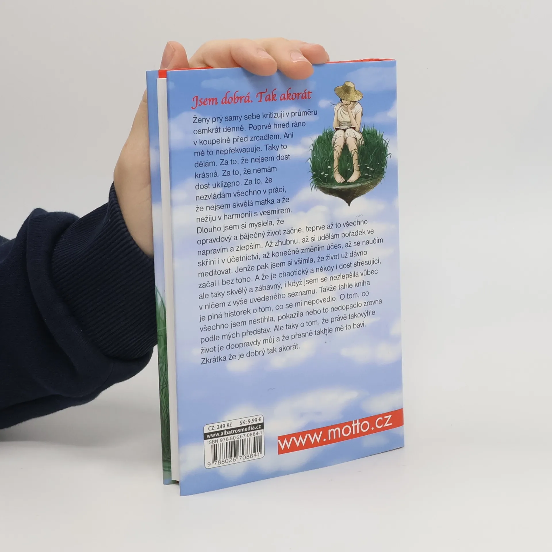 Ženy prý samy sebe kritizují v průměru osmkrát denně. Poprvé hned ráno v koupelně před zrcadlem. Ani mě to nepřekvapuje. Taky to dělám. Za to, že nejsem dost krásná. Za to, že nemám dost uklizeno. Za to, že nezvládám všechno v práci, že nejsem skvělá matka a že nežiju v harmonii s vesmírem. Dlouho jsem si myslela, že opravdový a báječný život začne, teprve až to všechno napravím a zlepším. Až zhubnu, až si udělám pořádek ve skříni i v účetnictví, až konečně změním účes, až se naučím meditovat. Jenže pak jsem si všimla, že život už dávno začal i bez toho. A že je chaotický a někdy i dost stresující, ale taky skvělý a zábavný, i když jsem se nezlepšila vůbec v ničem z výše uvedeného seznamu. Takže tahle kniha je plná historek o tom, co se mi nepovedlo. O tom, co všechno jsem nestihla, pokazila nebo to nedopadlo zrovna podle mých představ. Ale taky o tom, že právě takovýhle život je doopravdy můj a že přesně takhle mě to baví. Zkrátka že je dobrý tak akorát.