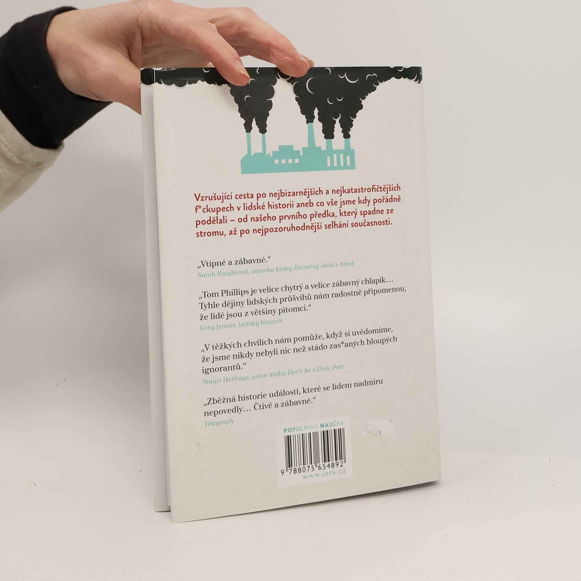 Vzrušující cesta po nejvíce kreativních a katastrofických f*ck ups v lidské historii aneb Co vše jsme kdy pořádně podělali – od našeho prvního předka, který spadne ze stromu, až po nejpozoruhodnější selhání současnosti. Během sedmi tisíc let, co moderní člověk kráčí po tomto světě, jsme ušli velmi dlouhou cestu. Umění, věda, kultura, technologie – na evolučním potravinovém řetězci jsme skuteční vítězové. Ale buďme upřímní, nebyla to zrovna procházka rájem a občas jsme to prostě opravdu pořádně a kvalitně podělali. Od našeho předka, který sletěl z větve, přes rakouskou armádu, jež jedné prochlastané noci zaútočila sama na sebe, až k přední světové supervelmoci, která jako prezidenta zvolila moderátora TV show… je celkem na místě si jako druh říci, že jsme se s věkem rozhodně nestali moudřejšími. Takže až si příště budete myslet, že jste něco opravdu podělali, tahle kniha vám připomene, že to mohlo být mnohem horší. Zábavná procházka těmi nejkreativnějšími a nejkatastrofičtějšími průsery lidských dějin.