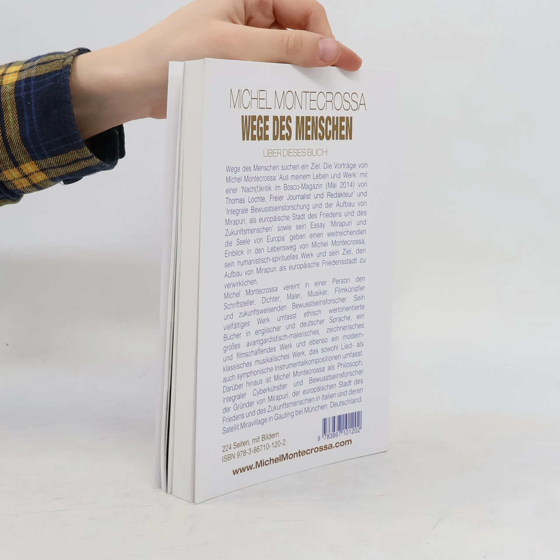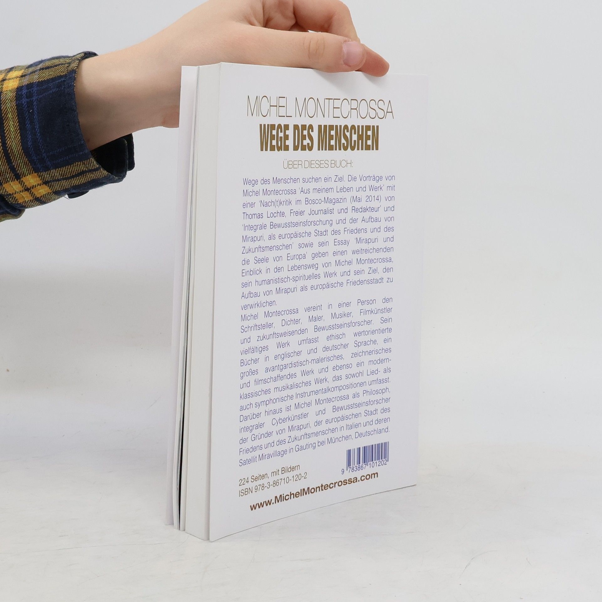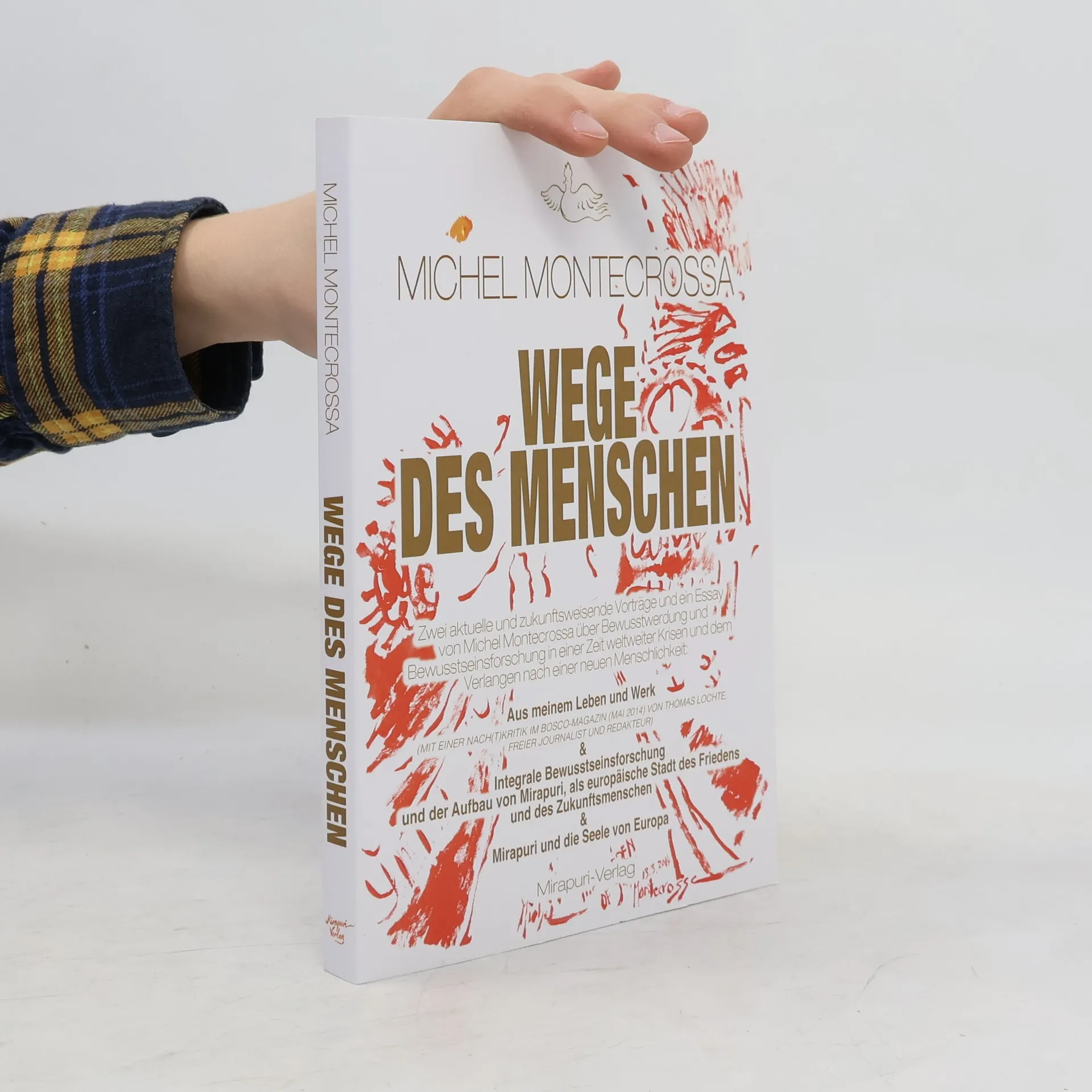 Wege des Menschen suchen ein Ziel. Die Vorträge von Michel Montecrossa ‘Aus meinem Leben und Werk’ mit einer ‘Nach(t)kritik im Bosco-Magazin (Mai 2014) von Thomas Lochte, Freier Journalist und Redakteur’ und ‘Integrale Bewusstseinsforschung und der Aufbau von Mirapuri, als europäische Stadt des Friedens und des Zukunftsmenschen’ sowie sein Essay ‘Mirapuri und die Seele von Europa’ geben einen weitreichenden Einblick in den Lebensweg von Michel Montecrossa, sein humanistisch-spirituelles Werk und sein Ziel, den Aufbau von Mirapuri als europäische Friedensstadt zu verwirklichen. Michel Montecrossa vereint in einer Person den Schriftsteller, Dichter, Maler, Musiker, Filmkünstler und zukunftsweisenden Bewusstseinsforscher. Sein vielfältiges Werk umfasst ethisch wertorientierte Bücher in englischer und deutscher Sprache, ein großes avantgardistisch-malerisches, zeichnerisches und filmschaffendes Werk und ebenso ein modern-klassisches musikalisches Werk, das sowohl Lied- als auch symphonische Instrumentalkompositionen umfasst. Darüber hinaus ist Michel Montecrossa als Philosoph, integraler Cyberkünstler und Bewusstseinsforscher der Gründer von Mirapuri, der europäischen Stadt des Friedens und des Zukunftsmenschen in Italien und deren Satellit Miravillage in Gauting bei München, Deutschland.