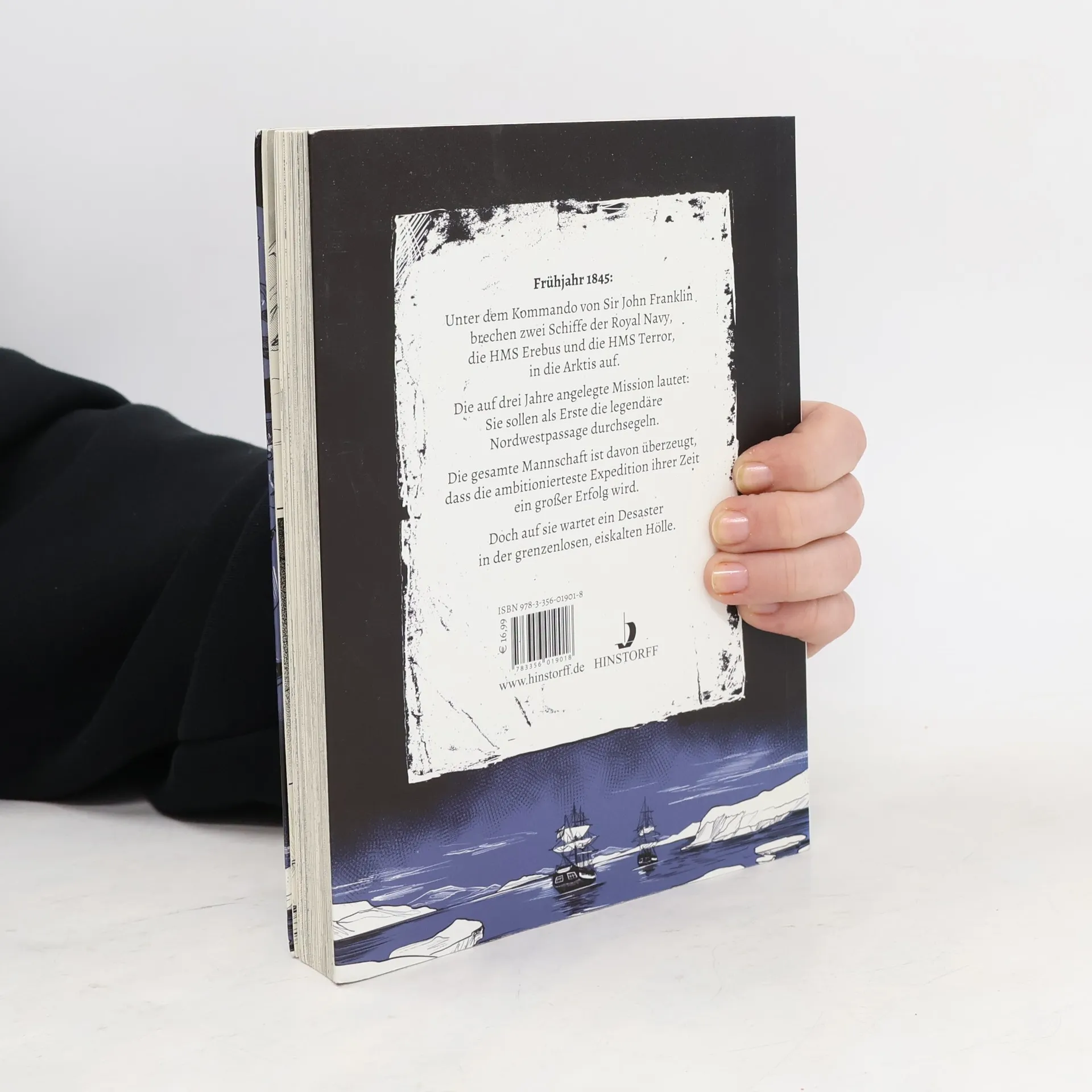 Frühjahr 1845: Unter dem Kommando von Sir John Franklin brechen zwei Schiffe der Royal Navy, die HMS Erebus und die HMS Terror, in die Arktis auf. Die auf drei Jahre angelegte Mission lautet: Sie sollen als Erste die legendäre Nordwestpassage vom Atlantik in den Pazifik durchsegeln. Die gesamte Mannschaft ist davon überzeugt, dass die ambitionierteste Expedition ihrer Zeit ein großer Erfolg wird. Schon bald erschüttert der erste Todesfall den Optimismus der Besatzung. Doch auf sie wartet ein noch viel größeres Desaster in der grenzenlosen, eiskalten Hölle. Kristina Gehrmann erzählt die Geschichte um das Rätsel der legendären Franklin-Expedition in einer packenden Graphic Novel. Band 2 ("Gefangen") und 3 ("Verschollen") werden im Herbst 2015 bzw. Frühjahr 2016 erscheinen.