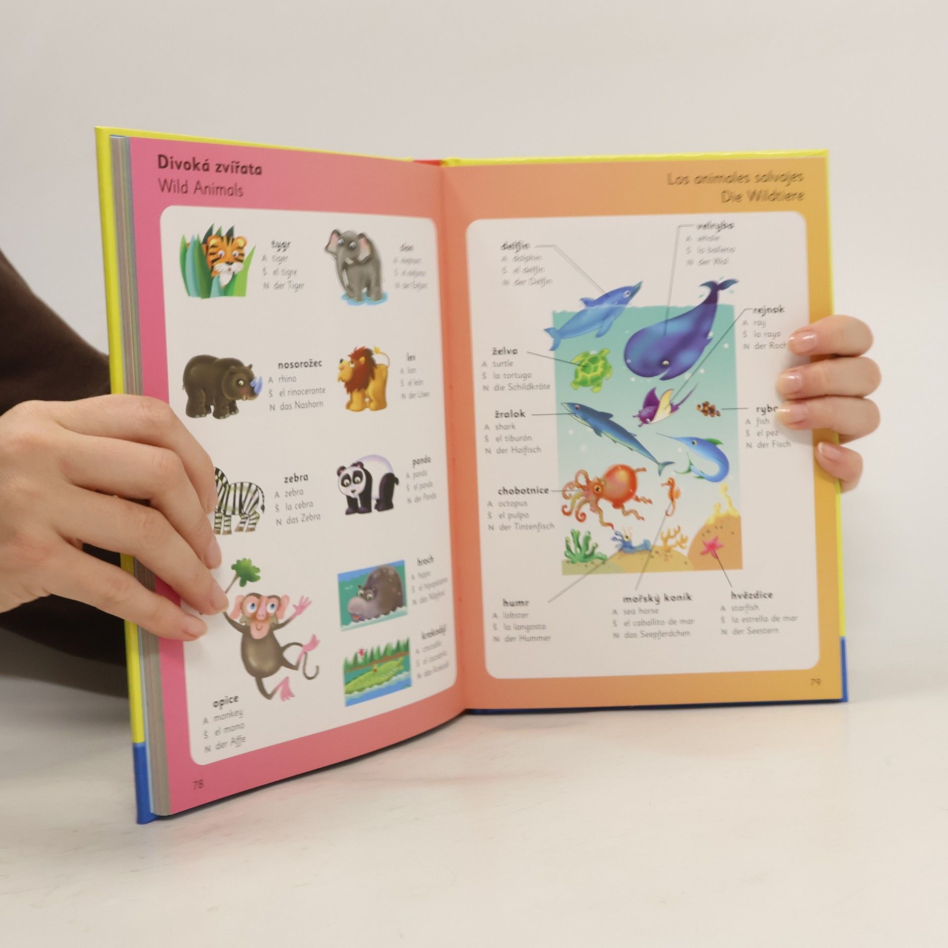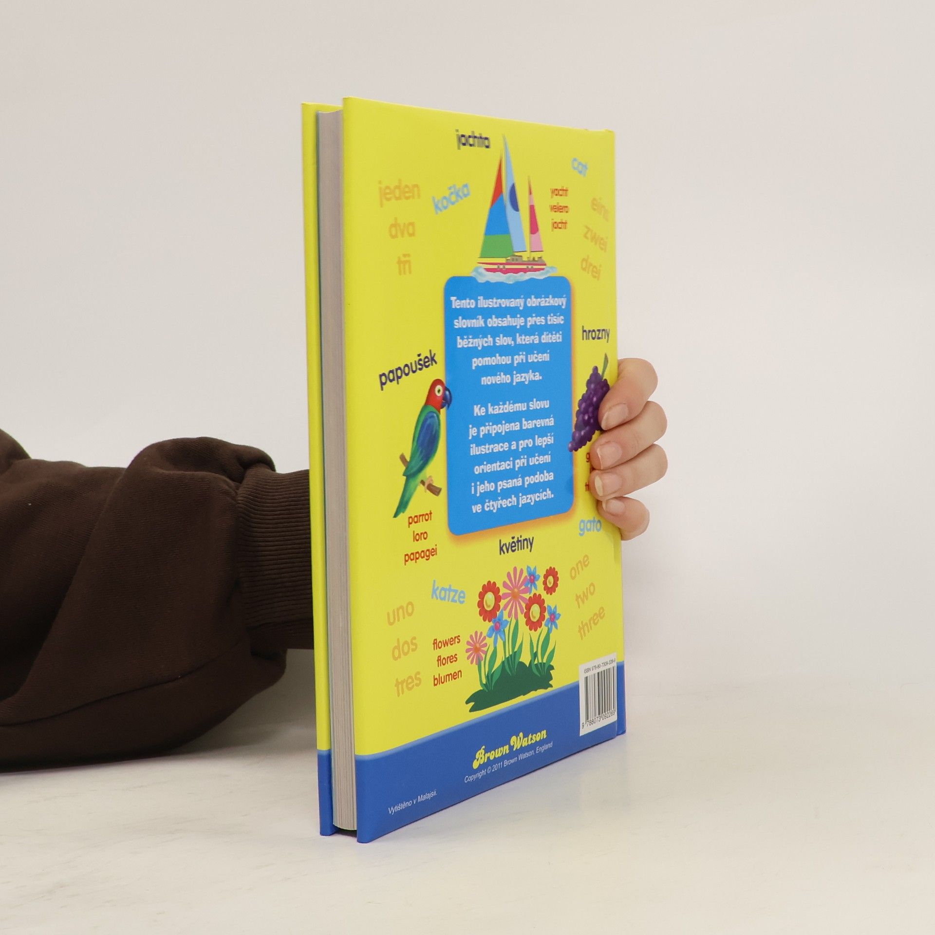 Ilustrovaný obrázkový slovník obsahující přes tisíc běžných slov, která dítěti pomohou při učení nového jazyka. Ke každému slovu je připojena barevná ilustrace a pro lepší orientaci při učení i jeho psaná podoba ve čtyřech jazycích.
