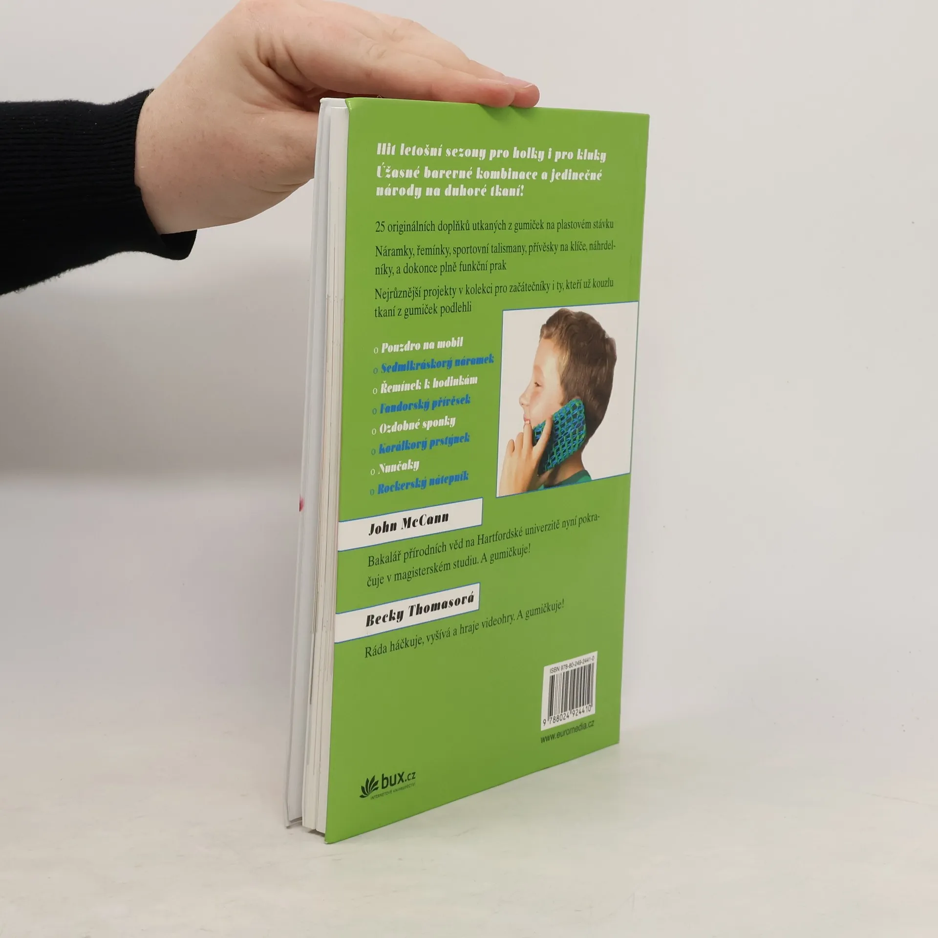 25 senzačních návrhů na duhové tkaní z gumiček Hit letošní sezony pro holky i pro kluky! Budete potřebovat jen stávek, kupu barevných gumiček, háček, trochu zručnosti a hodně fantazie. Pak se můžete pustit do zábavného duhového tkaní! Vyberte si z 25 nápaditých projektů: jsou mezi nimi náramky, sportovní talismany, přívěsky na klíče, náhrdelníky, pouzdro na mobil, rockerský nátepník, a dokonce i plně funkční prak. Podlehněte kouzlu tkaní z gumiček a přidejte nové výrazné doplňky ke svému outfitu!