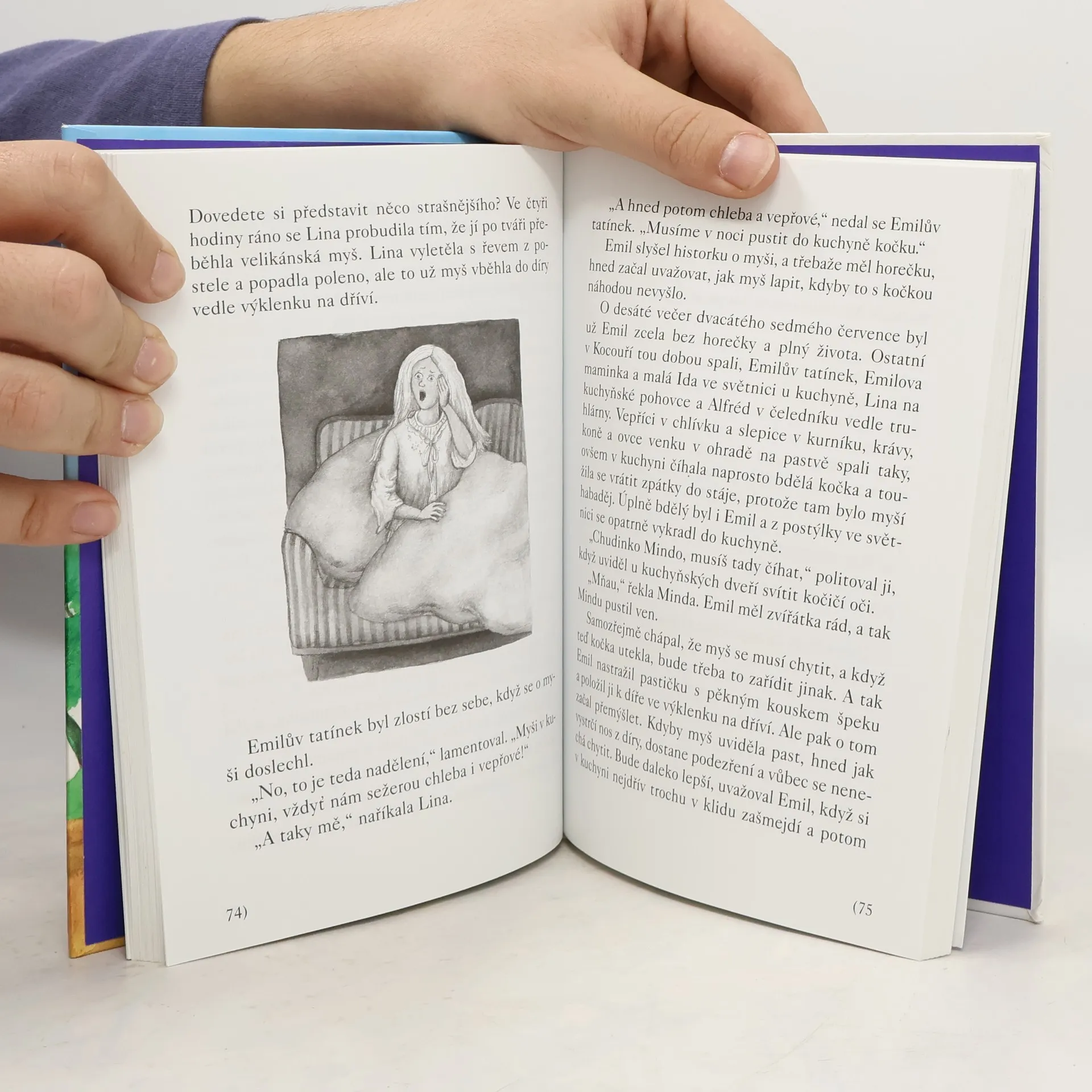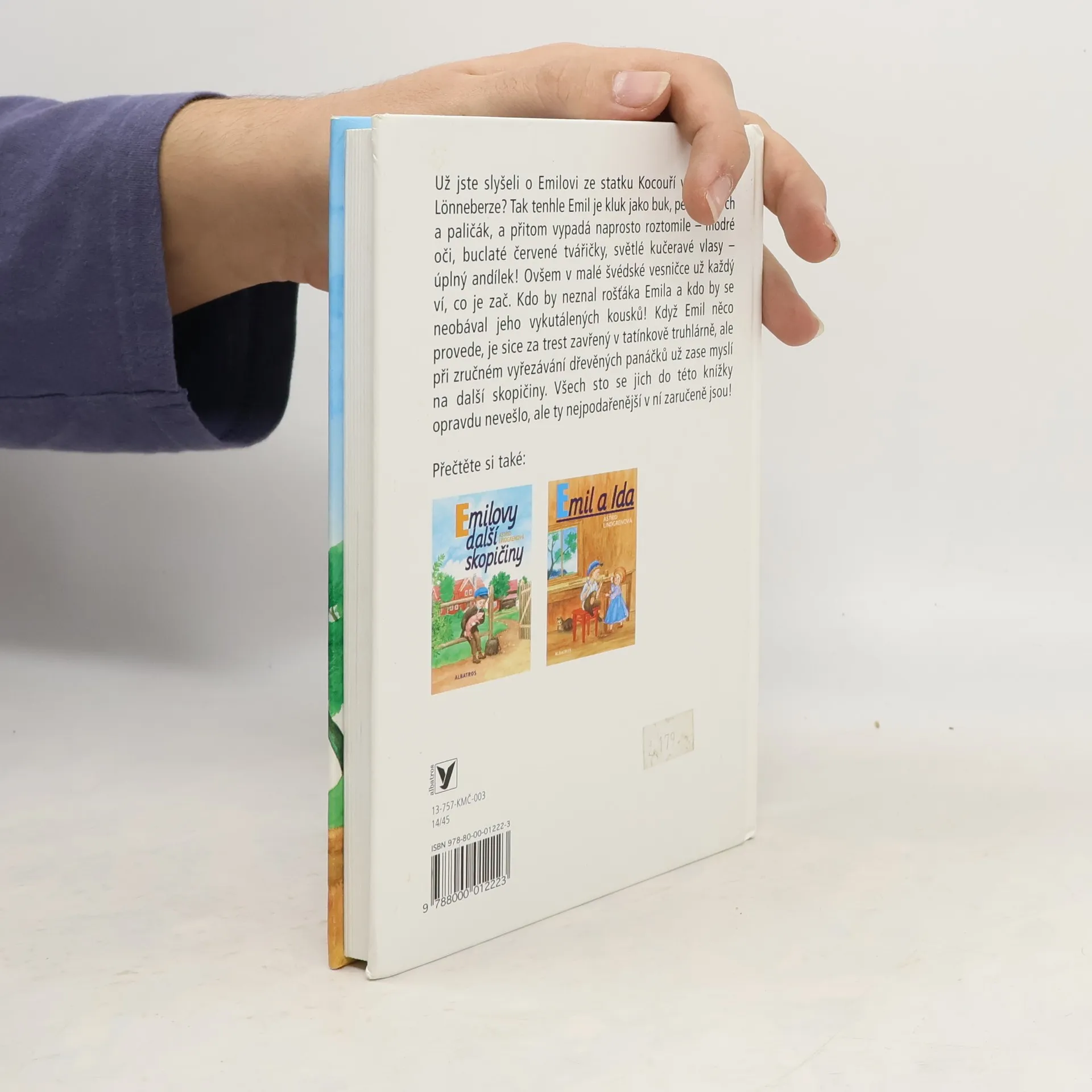 Emil je kluk jako buk, je mu pět let a je to pěkný divoch a paličák. Vypadá sice roztomile - modré oči, buclaté červené tvářičky, světlé kučeravé vlasy - úplný andílek! Ale ve švédské vesničce Lönneberze není jediného človíčka, který by neznal rošťáka Emila a který by se neobával jaho vykutálených kousků. A všichni také dobře vědí, že počet dřevěných panáčků vyrovnaných na poličce v truhlárně Emilova tatínka už přesáhl stovku. Když totiž Emílek něco provede, sedí za trest v truhlárně, přemýšlí údajně o svých prohřešcích a přitom zručně vyřezává legrační panáčky. Skutečně ovšem přemýšlí o nových skopičinách. Všech sto se jich do této knížky opravdu nevešlo, ale ty nejpodařenější v ní zaručeně jsou! Dotisk v r. 2008 ISBN 978-80-00-01222-3 (dotisk)... celý text
