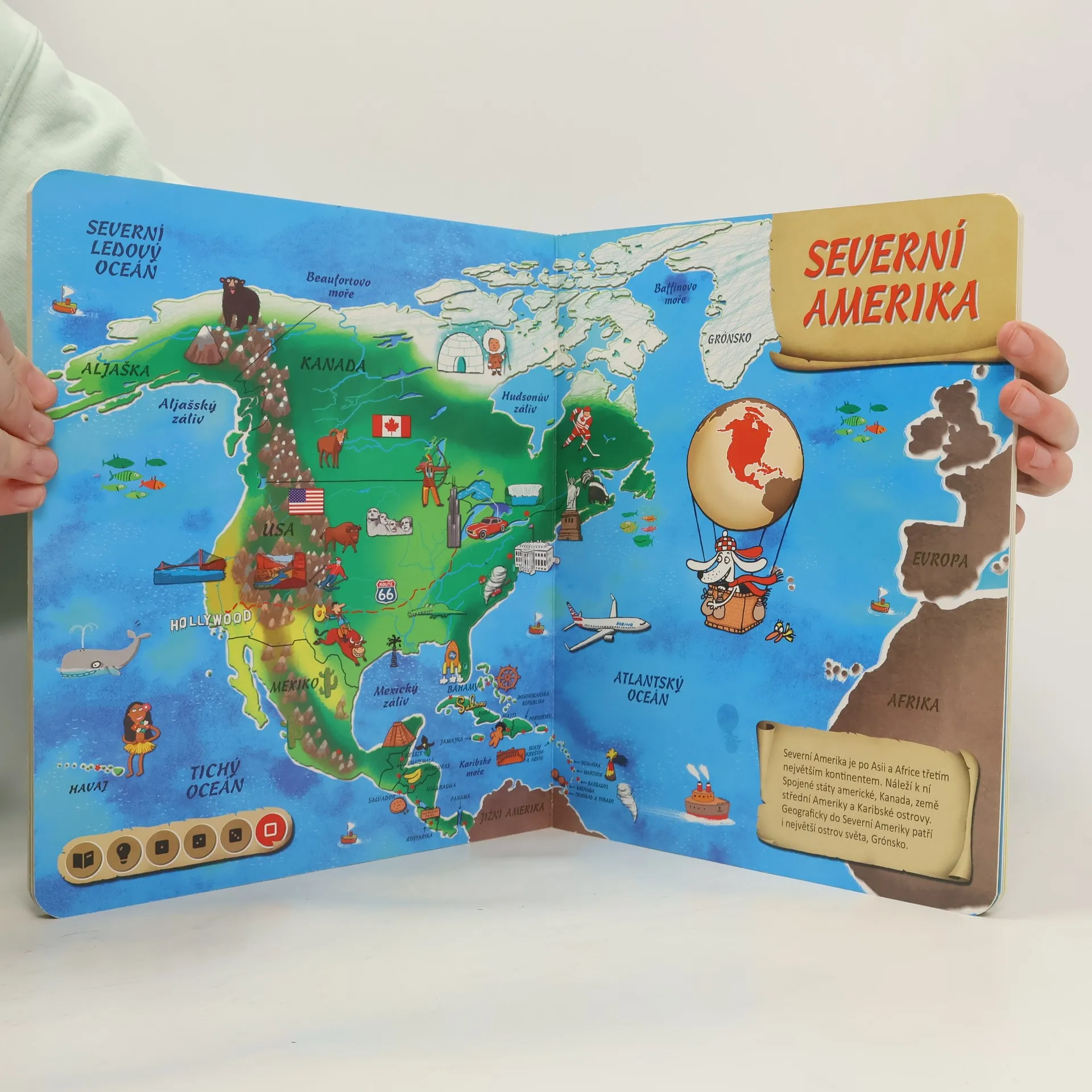 Tato kniha obsahuje osm různých map. Na jednotlivých stranách se seznámíte se všemi kontinenty, poznáte země na naší planetě a zjistíte, kde tyto země leží. Nechybí zde ani oceány, moře, velké řeky a pohoří, které jsou nedílnou součástí naší planety. Obrázky na mapách vám ukáží, jaká zvířata, stavby či jiné zajímavosti můžete v jednotlivých zemích najít. Kniha je namluvena známým českým hercem Otakarem Brouskem ml. Kniha obsahuje přes 1800 zvuků a textů.