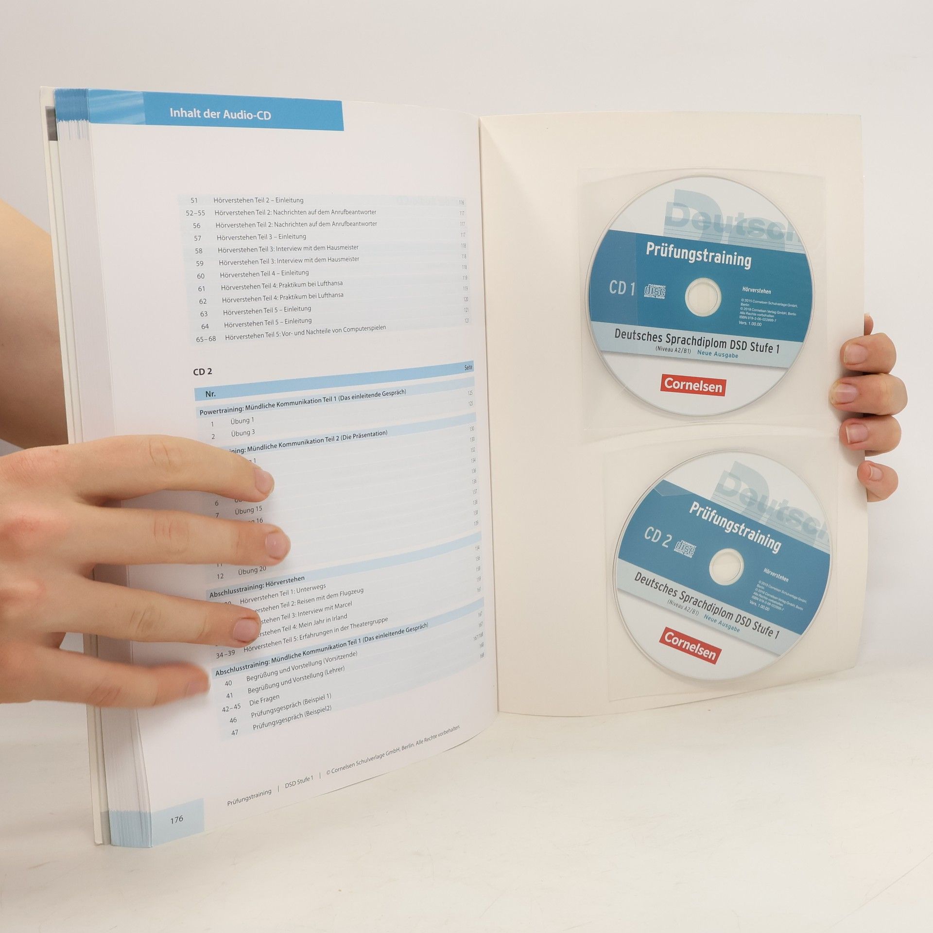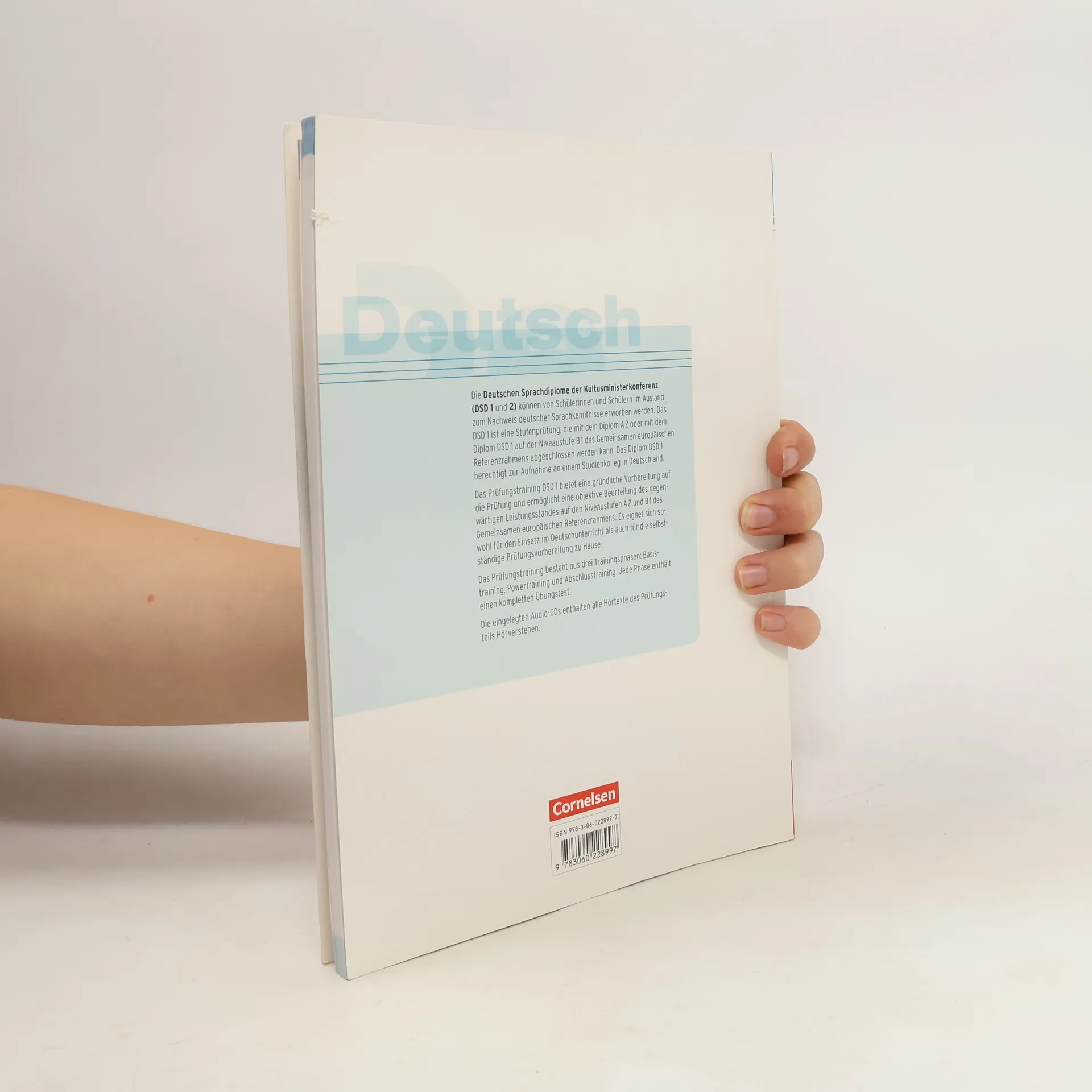 Niveau A2 bis B1. Die aktualisierte Ausgabe des bewährten Prüfungstrainings richtet sich nach den neuen Prüfungsformaten und bereitet optimal auf die Prüfung DSD 1 vor. Didaktisierte Testaufgaben mit zahlreichen Tipps trainieren systematisch die Fertigkeiten Hör- und Leseverstehen sowie schriftliche und mündliche Kommunikation. Außerdem vermitteln sie Strategien für die Vorbereitung und Bewältigung der Prüfung. Mit einem Modelltest kann das Gelernte unter Prüfungsbedingungen trainiert werden. Auf den beiliegenden CDs befinden sich alle Hörtexte zu Übungen und Tests. Das Buch eignet sich im Unterricht und zum Selbstlernen. Informationen zur Reihe: Die Bücher stellen Übungen, Arbeitshilfen und Tipps zur Verfügung - differenziert für individuelle Bedürfnisse und klar im Aufbau. Eine detaillierte Bewertung der Prüfungsteile hilft den Lernenden, ihren eigenen Stand genau einzuschätzen. Jedes Übungsbuch ist sowohl für den Unterricht als auch für das Selbststudium geeignet