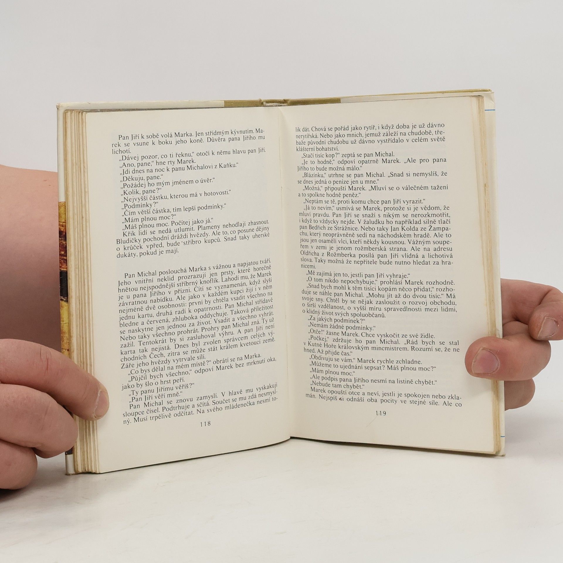 První díl trilogie (Přede mnou poklekni, Čekání na krále, A zbyl jen meč) z období prvních let vlády Jiřího z Poděbrad. Román z období prvních let vlády Jiřího z Poděbrad. Na pozadí taktiky a strategie budoucího "husitského krále", který se pokouší o sjednocení celého českého království, vystupuje v řadě dějově rušných scén dramatický osud hlavních hrdinů, mladého Marka z Jiříkovy družiny a Anděly Smiřické, dcery předního českého šlechtice, jenž se postupně stává Jiříkovým politickým odpůrcem. Příběh, v němž Marek touží získat přízeň Anděly, je příběhem o dvojí věrnosti, o věrnosti lásce a o věrnosti poznané pravdě. Kniha byla v r. 1972 vyznamenána cenou Svazu českých spisovatelů. Obálku s použitím detailu malby Mistra Vyšebrodského oltáře Zvěstování Panny Marie a vazbu navrhl Zdenek Seydl.
