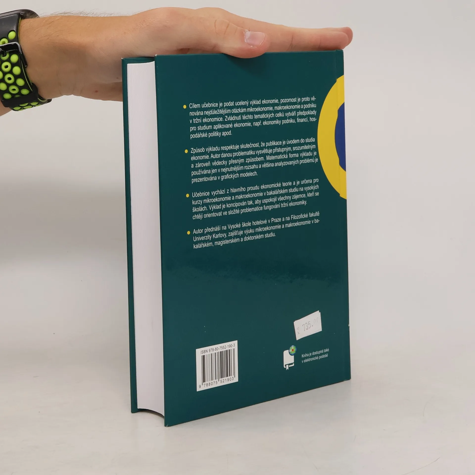 Cílem učebnice je podat ucelený výklad ekonomie, pozornost je proto věnována nejdůležitějším otázkám mikroekonomie, makroekonomie a podniku v tržní ekonomice. Zvládnutí těchto tematických celků vytváří předpoklady pro studium aplikované ekonomie, např. ekonomiky podniku, financí, hospodářské politiky apod. Způsob výkladu respektuje skutečnost, že publikace je úvodem do studia ekonomie. Autor danou problematiku vysvětluje přístupným, srozumitelným a zároveň vědecky přesným způsobem. Matematická forma výkladu je používána jen v nejnutnějším rozsahu a většina analyzovaných problémů je prezentována v grafických modelech. Učebnice vychází z hlavního proudu ekonomické teorie a je určena pro kurzy mikroekonomie a makroekonomie v bakalářském studiu na vysokých školách. Výklad je koncipován tak, aby uspokojil všechny zájemce, kteří se chtějí orientovat ve složité problematice fungování tržní ekonomiky. Autor přednáší na Vysoké škole hotelové v Praze a na Filozofické fakultě Univerzity Karlovy, zajišťuje výuku mikroekonomie a makroekonomie v bakalářském, magisterském a doktorském studiu.