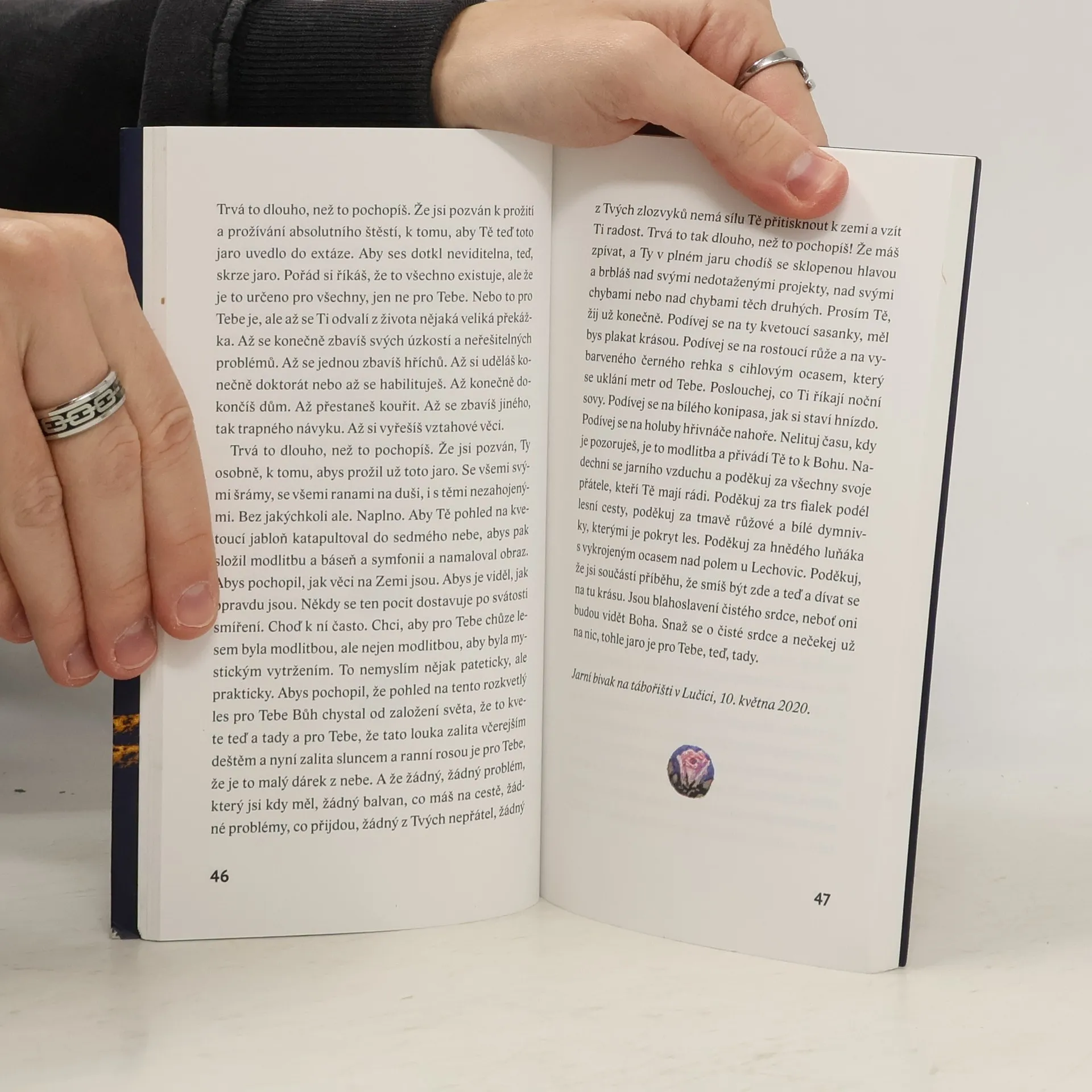 Dnes si mladí fotí selfíčka, aby, snad, zachytili důležité momenty života. Naučil jsem se selfíčka nikoli fotografovat, ale psát. Chci teď spíše ustoupit do pozadí a nechat čtenářovu fantazii pracovat, chci ukázat jen náčrtky. Dříve si lidé psali deníky, aby pomohli paměti a zachytili pomíjivé okamžiky. Rembrandt si občas kreslil rychlé skicy, pérovky, zachycení momentu pár čarami. Dnes si mladí fotí selfíčka, aby, snad, zachytili důležité momenty života. Naučil jsem se selfíčka nikoli fotografovat, ale psát. Chci teď spíše ustoupit do pozadí a nechat čtenářovu fantazii pracovat, chci ukázat jen náčrtky. Caspar David Friedrich u svých obrazů maloval postavy otočené zády k divákovi, aby ho vtáhl do děje. Dělám si velkou naději, že ty okamžiky, které jsou čímsi výjimečné, čtenář v té či oné podobě zažil taky, a že snad v něm mohou něco rozeznít, jako rozezněly ve mně.