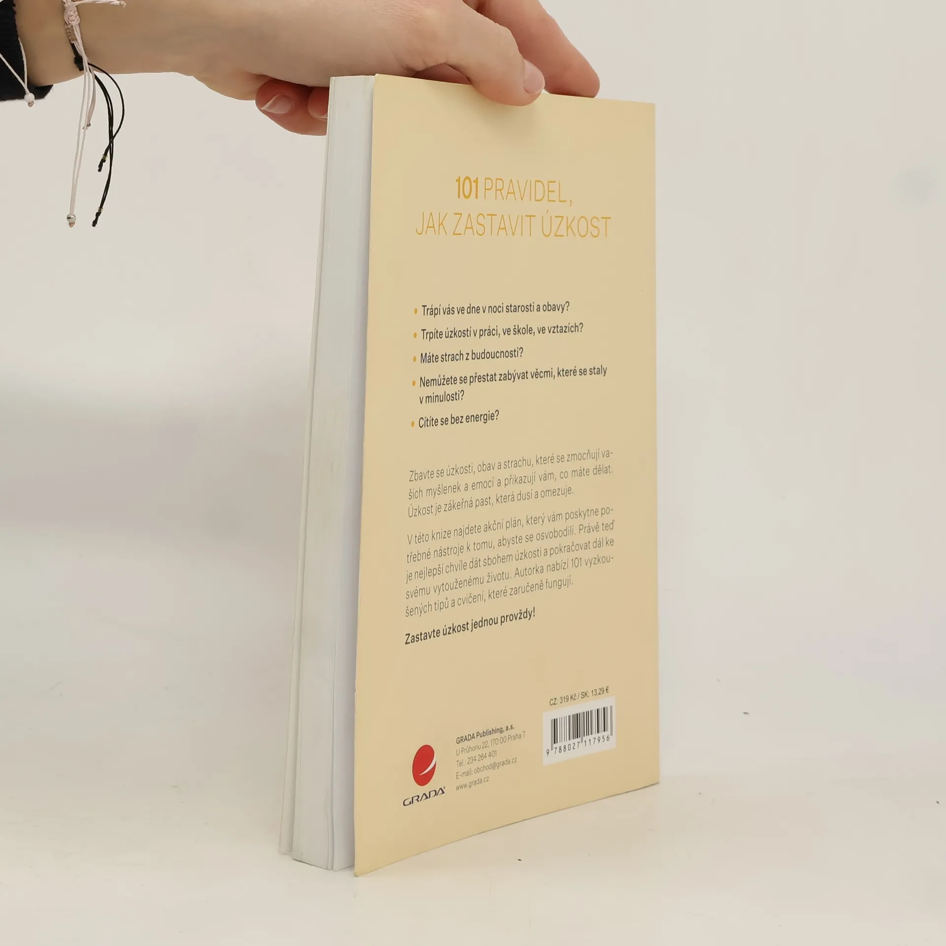 • Trápí vás ve dne v noci starosti a obavy? • Trpíte úzkostí v práci, ve škole, ve vztazích? • Máte strach z budoucnosti? • Nemůžete se přestat zabývat věcmi, které se staly v minulosti? • Cítíte se bez energie? Zbavte se úzkosti, obav a strachu, které se zmocňují vašich myšlenek a emocí a přikazují vám, co máte dělat. Úzkost je zákeřná past, která dusí a omezuje. V této knize najdete akční plán, který vám poskytne potřebné nástroje k tomu, abyste se osvobodili. Právě teď je nejlepší chvíle dát sbohem úzkosti a pokračovat dál ke svému vytouženému životu. Autorka nabízí 101 vyzkoušených tipů a cvičení, které zaručeně fungují. Zastavte úzkost jednou provždy!