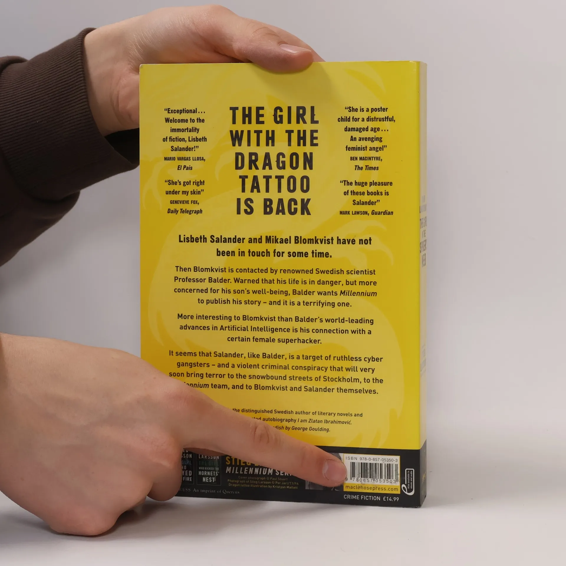 The girl with the dragon tattoo is back. Lisbeth Salander and Mikael Blomkvist have not been in touch for some time. Then Blomkvist is contacted by renowned Swedish scientist Professor Balder. Warned that his life is in danger, but more concerned for his son's well-being, Balder wants Millennium to publish his story - and it is a terrifying one. More interesting to Blomkvist than Balder's world-leading advances in Artificial Intelligence, is his connection with a certain female superhacker. It seems that Salander, like Balder, is a target of ruthless cyber gangsters - and a violent criminal conspiracy that will very soon bring terror to the snowbound streets of Stockholm, to the Millennium team, and to Blomkvist and Salander themselves