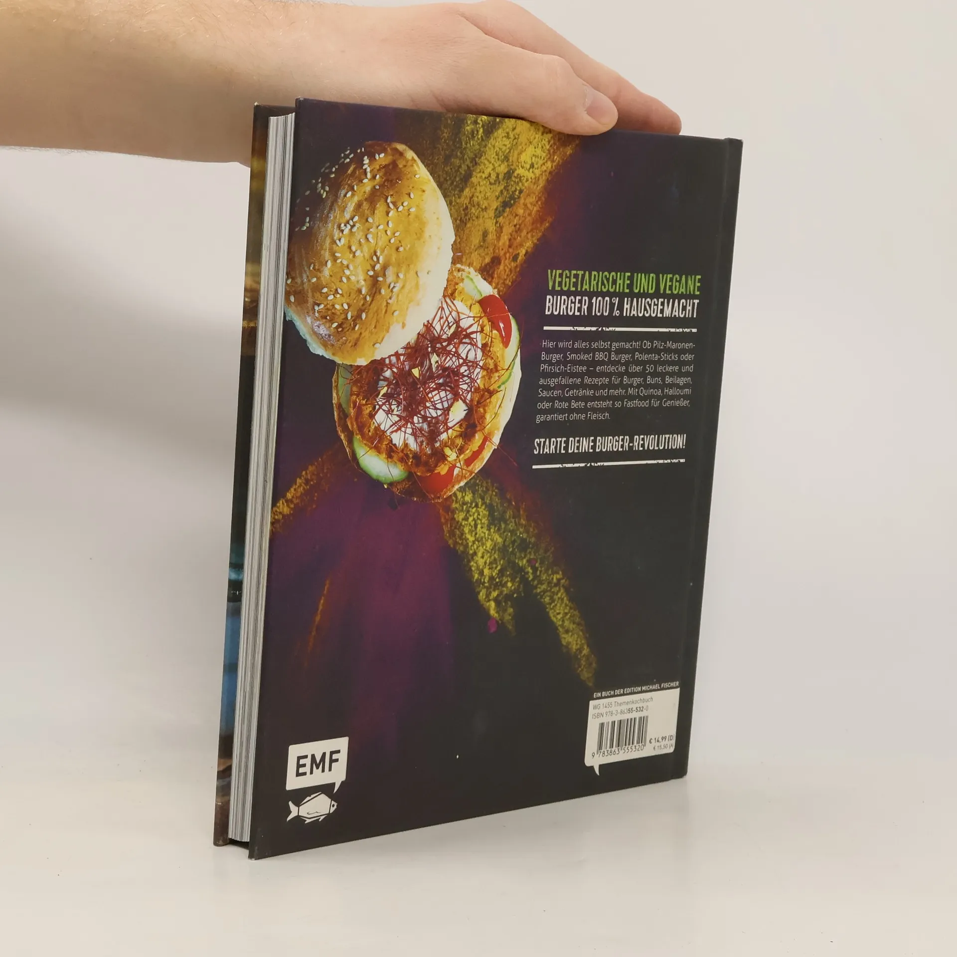 Auf einen guten Burger gehört zwangsläufig Fleisch? Falsch gedacht! In seinem Buch „Burger-Revolution“ zeigt der Foodfotograf Jonathan Häde, dass die vegetarischen und veganen Varianten von Burger, Pommes & Co. normalem Fast Food in nichts nachstehen. Pilz-Maronen-Burger, Smoked BBQ-Burger, Thymian-Fritten, Coleslaw oder Ingwerlimonade: Entdecke über 50 leckere und ausgefallene Rezepte für Burger, Buns, Beilagen, Saucen, Getränke und mehr. Mit Quinoa, Halloumi oder Rote Bete entsteht 100 % selbst gemachtes Fast Food für Genießer. Inklusive kleiner Zutatenkunde und Grundwissen rund um das Thema Burger. Starte deine Burger-Revolution!