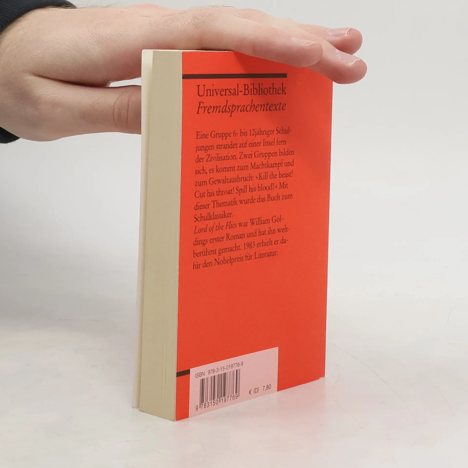 Englische Literatur in Reclams Roter Reihe: das ist der englische Originaltext – mit Worterklärungen am Fuß jeder Seite, Nachwort und Literaturhinweisen. Der »Herr der Fliegen« ist Beelzebub, als Baal Zebub ein Dämon im Alten Testament, Symbol für die Verführbarkeit und – hier vor allem – Gewaltbereitschaft des Menschen. Eine Gruppe 6- bis 12-jähriger Schuljungen strandet auf einer Insel fern der Zivilisation. Zwei Gruppen bilden sich, es kommt zum Machtkampf und zum Mord: »Kill the beast! Cut his throat! Spill his blood!« Mit dieser Thematik wurde das Buch zum Schulklassiker. Lord of the Flies war William Goldings erster Roman und hat ihn weltberühmt gemacht. 1983 erhielt er dafür den Nobelpreis für Literatur. Englische Lektüre: Niveau B2 (GER) Sprachen: Englisch, Deutsch