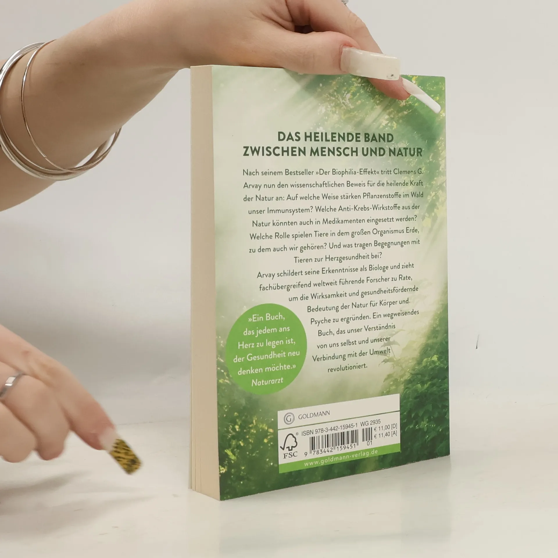 Die verborgenen Kräfte von Pflanzen und Tieren entdecken Unser Körper endet nicht an der Hautoberfläche: Mensch und Natur sind tiefgreifend miteinander verbunden. Nach seinem Bestseller »Der Biophilia-Effekt« tritt Clemens G. Arvay nun den wissenschaftlichen Beweis für die Heilkraft der Natur an: Auf welche Weise stärken Pflanzenstoffe im Wald unser Immunsystem? Welche Anti-Krebs-Wirkstoffe aus der Natur könnten auch in Medikamenten eingesetzt werden? Welche Rolle spielen Tiere in dem großen Organismus Erde, zu dem auch wir gehören? Und was tragen Begegnungen mit Tieren zur Herzgesundheit bei? Arvay schildert seine Erkenntnisse als Biologe und zieht weltweit führende Forscher zurate. So entwickelt er die neue Wissenschaft der Ökopsychosomatik, die unser Verständnis von uns selbst und unserer Verbindung mit der Umwelt revolutioniert.