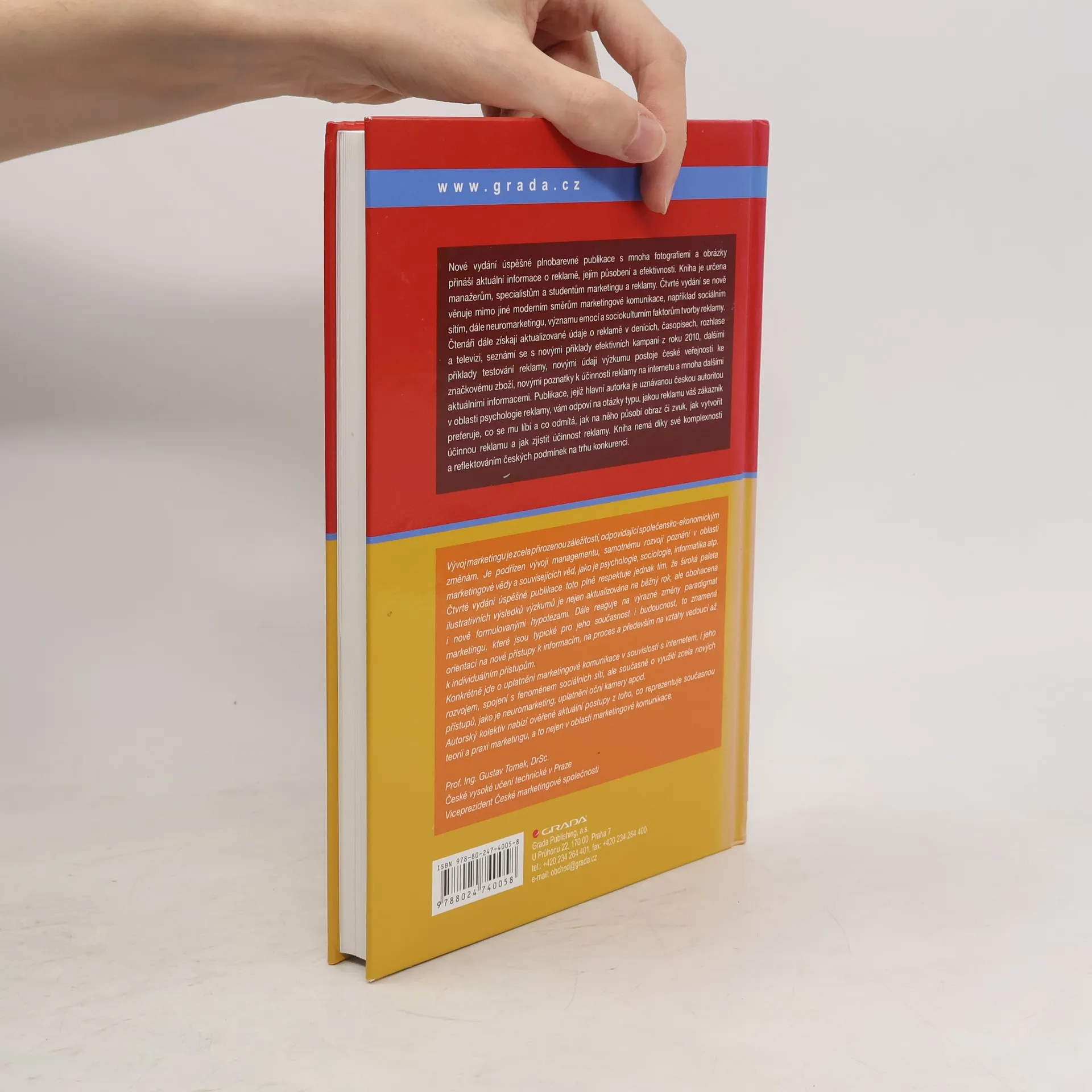 Nové vydání úspěšné plnobarevné publikace s mnoha fotografiemi a obrázky přináší aktuální informace o reklamě a jejím působení a efektivnosti. Kniha je určena manažerům, specialistům a studentům marketingu a reklamy. Čtvrté vydání se nově věnuje například moderním směrům marketingové komunikace týkajícím se sociálních sítí, dále neuromarketingu, významu emocí a sociokulturním faktorům tvorby reklamy. Čtenáři dále získají aktualizované údaje o reklamě v denících, časopisech, rozhlase a televizi, seznámí se s novými příklady efektivních kampaní z roku 2010, dalšími příklady testování reklamy, novými údaji výzkumu postoje české veřejnosti ke značkovému zboží, novými poznatky k účinnosti reklamy na internetu a mnoha dalšími aktuálními informacemi a poznatky. Publikace, jejíž hlavní autorka je uznávanou českou autoritou v oblasti psychologie reklamy, vám odpoví na otázky typu, jakou reklamu váš zákazník preferuje, co se mu líbí a co odmítá, jak na něho působí obraz či zvuk, jak vytvořit účinnou reklamu a jak zjistit účinnost reklamy. Kniha nemá díky své komplexnosti a reflektování českých podmínek na trhu konkurenci.