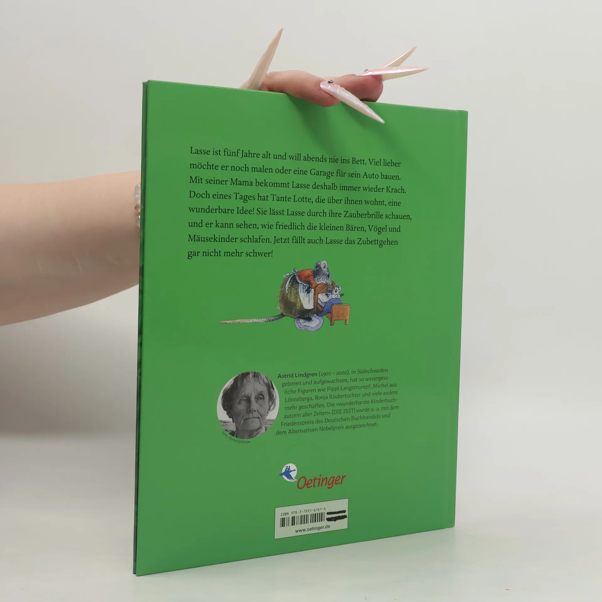 Lasse ist fünf Jahre alt und will abends nie ins Bett. Viel lieber möchte er noch malen oder eine Garage für sein Auto bauen. Mit seiner Mama bekommt Lasse deshalb immer wieder Krach. Doch eines Tages hat Tante Lotte, die über ihnen wohnt, eine wunderbare Idee! Sie lässt Lasse durch ihre Zauberbrille schauen und er kann sehen, wie friedlich die kleinen Bären, Vögel und Mäusekinder schlafen. Jetzt fällt auch Lasse das Zubettgehen gar nicht mehr schwer!