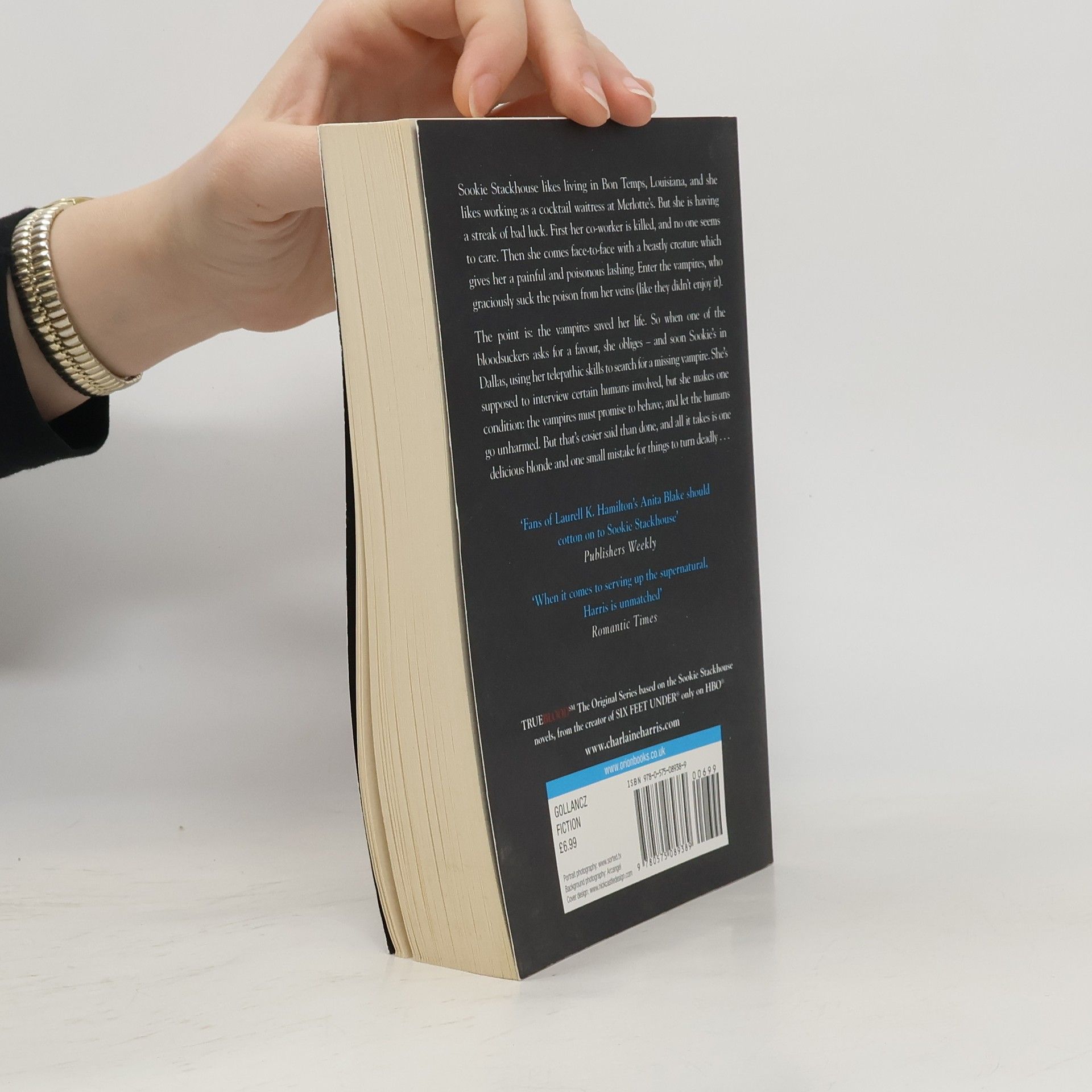 Cocktail waitress Sookie Stackhouse is having a streak of bad luck. First her co-worker is killed, and no one seems to care. Then she comes face-to-face with a beastly creature which gives her a painful and poisonous lashing. Enter the vampires, who graciously suck the poison from her veins (like they didn't enjoy it). The point is: they saved her life. So when one of the bloodsuckers asks for a favour, she obliges - and soon Sookie's in Dallas, using her telepathic skills to search for a missing vampire. She's supposed to interview certain humans involved, but she makes one condition: the vampires must promise to behave, and let the humans go unharmed. But that's easier said than done, and all it takes is one delicious blonde and one small mistake for things to turn deadly ... The Sookie Stackhouse books are delightful Southern Gothic supernatural mysteries, starring Sookie, the telepathic cocktail waitress, and a cast of increasingly colourful characters, including vampires, werewolves and things that really do go bump in the night.