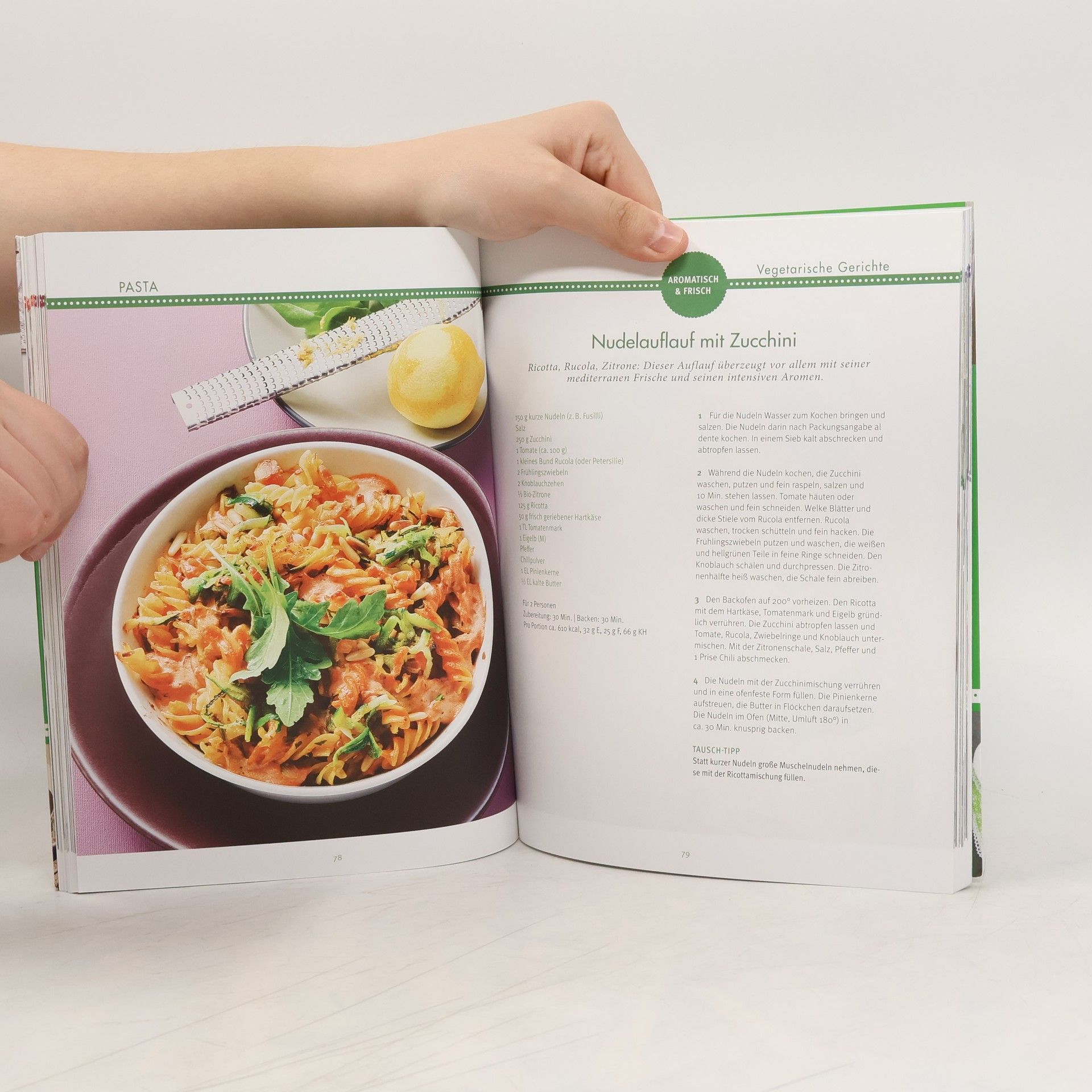 Im Handumdrehen zum Nudelglück: In „Pasta“ finden Sie die 80 besten Nudelrezepte – jedes garantiert ein Hit auf dem Teller. Ob sie viel oder wenig Zeit, mehr oder weniger Erfahrung in der Küche haben, es lieber fleischig oder veggie mögen – „Pasta“ bietet für jeden das passende Rezept. Herzhafte Rezept-Klassiker zum Sattessen und schnelle Pasta-Rezepte wechseln sich mit der überraschenden Geschmacksvielfalt grüner Nudelküche ab und zeigen Ihnen wie viel Pasta wirklich kann. Auch für den besonderen Anlass findet sich hier ganz sicher das Richtige, denn Pasta bereichert nicht nur die Jeden-Tag-Küche, sondern ist herausgeputzt auch richtig festtauglich – probieren Sie es aus! Sie werden garantiert nicht mehr aus dem Schwärmen herauskommen.