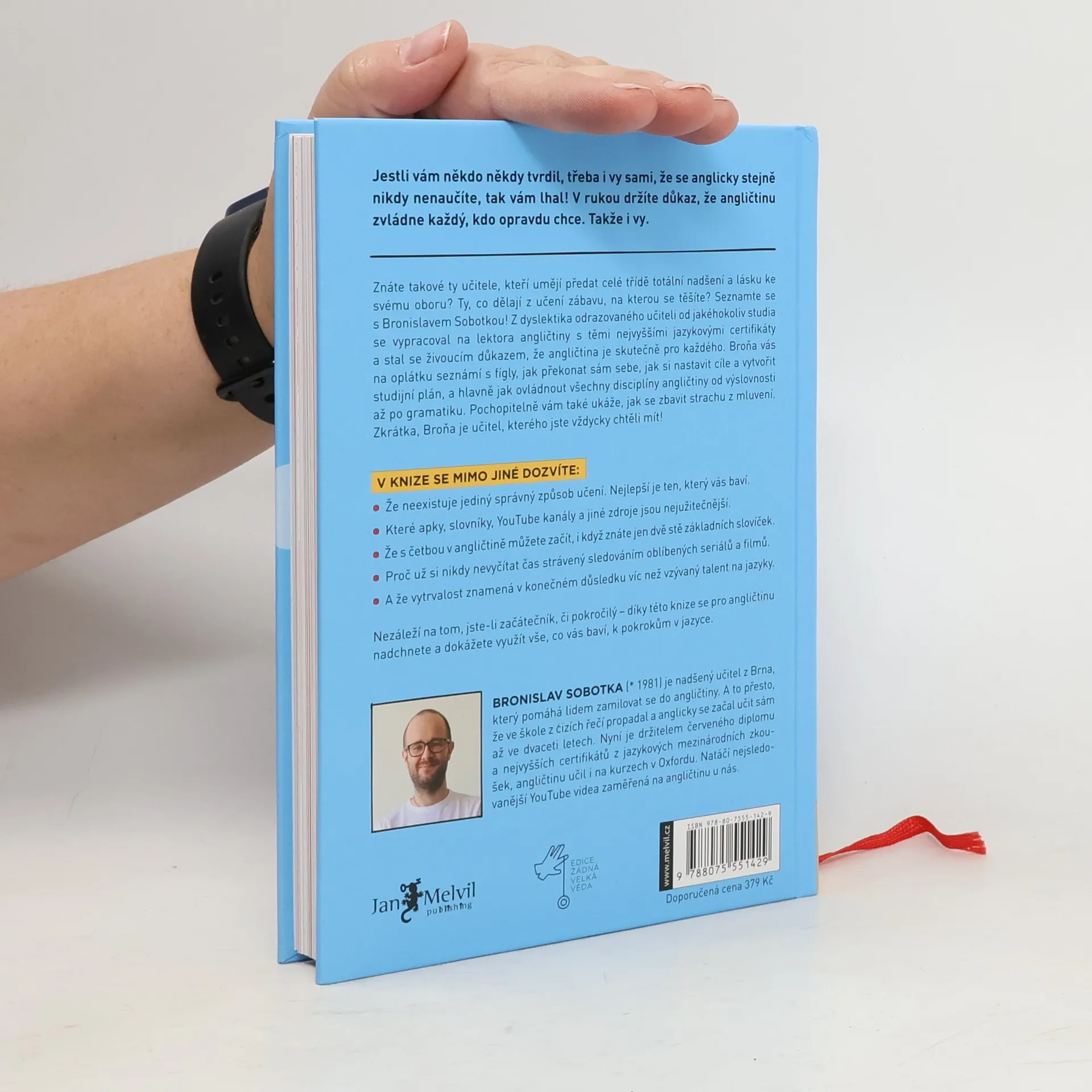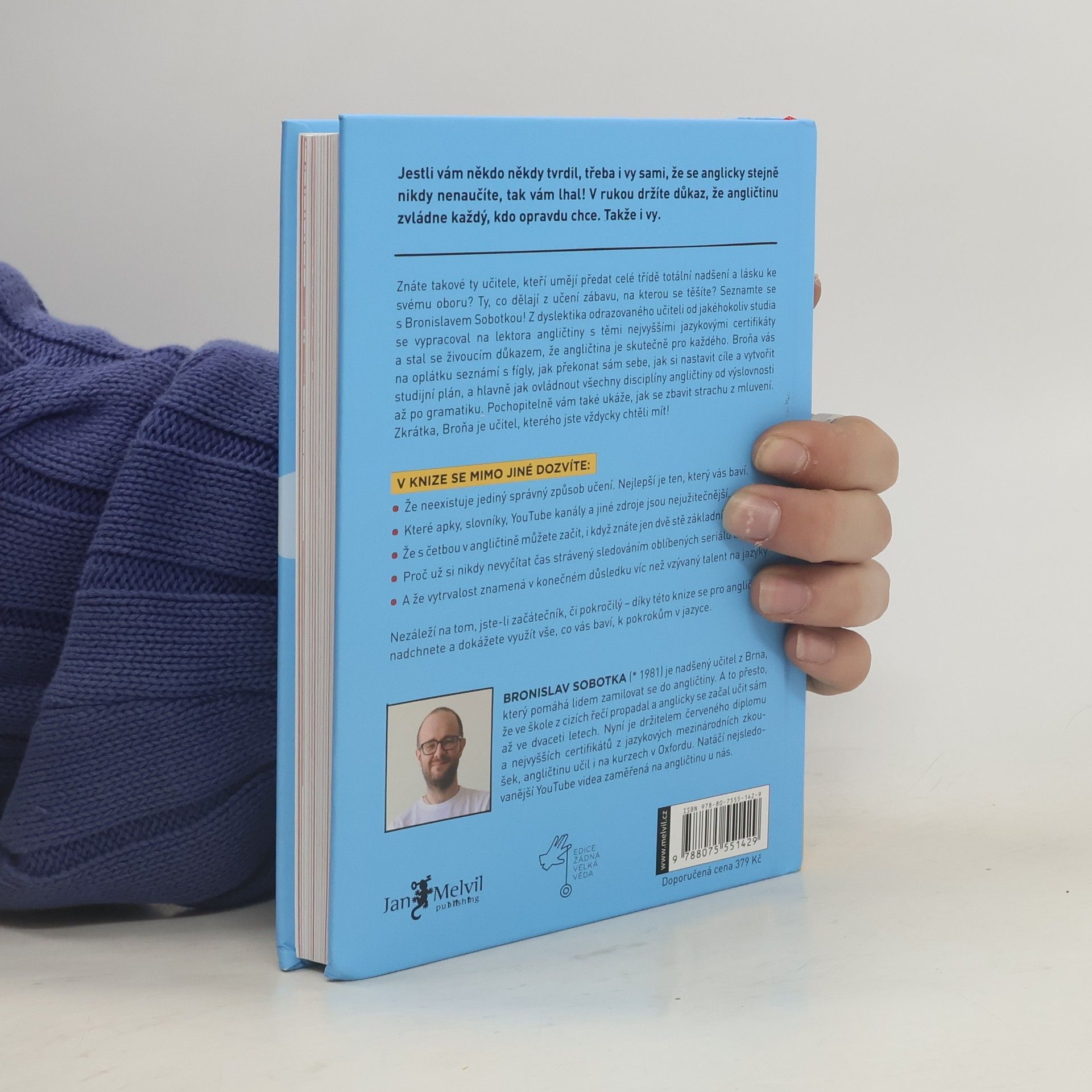 Hello my dear future readers! Jsem Broňa, nadšený učitel angličtiny z Brna, který pomáhá lidem zamilovat se do angličtiny a rád bych vám představil svoji novou knihu. Možná vás to překvapí, ale od malička jsem nesnášel školu. Asi proto, že mi vůbec nešla. Zvláště pak jazyky. Každý diktát za 5. Návrh na přestup do zvláštní školy. Dyslexie. Osm let němčiny a v hlavě prázdno. V 18 nastupuji jako dělník do fabriky a mám radost, že se už nemusím nic učit. End of the story. A víte co? Nakonec jsem vystudoval angličtinu na vysoké, s červeným diplomem, udělal si certifikát CPE a dal ho na Pass A, což je ta nejvyšší úroveň angličtiny, kterou v Cambridge měří. V létě jsem pak několik let po sobě učil angličtinu v Oxfordu a v Londýně jsem získal nejvyšší neuniverzitní globálně uznávanou kvalifikaci pro vyučující anglického jazyka DELTA. Učím jako externista na Masarykově univerzitě, školím učitele a mám největší YouTube kanál v ČR zaměřený na angličtinu, stejně jako nejstudovanější online kurz angličtiny u nás.
