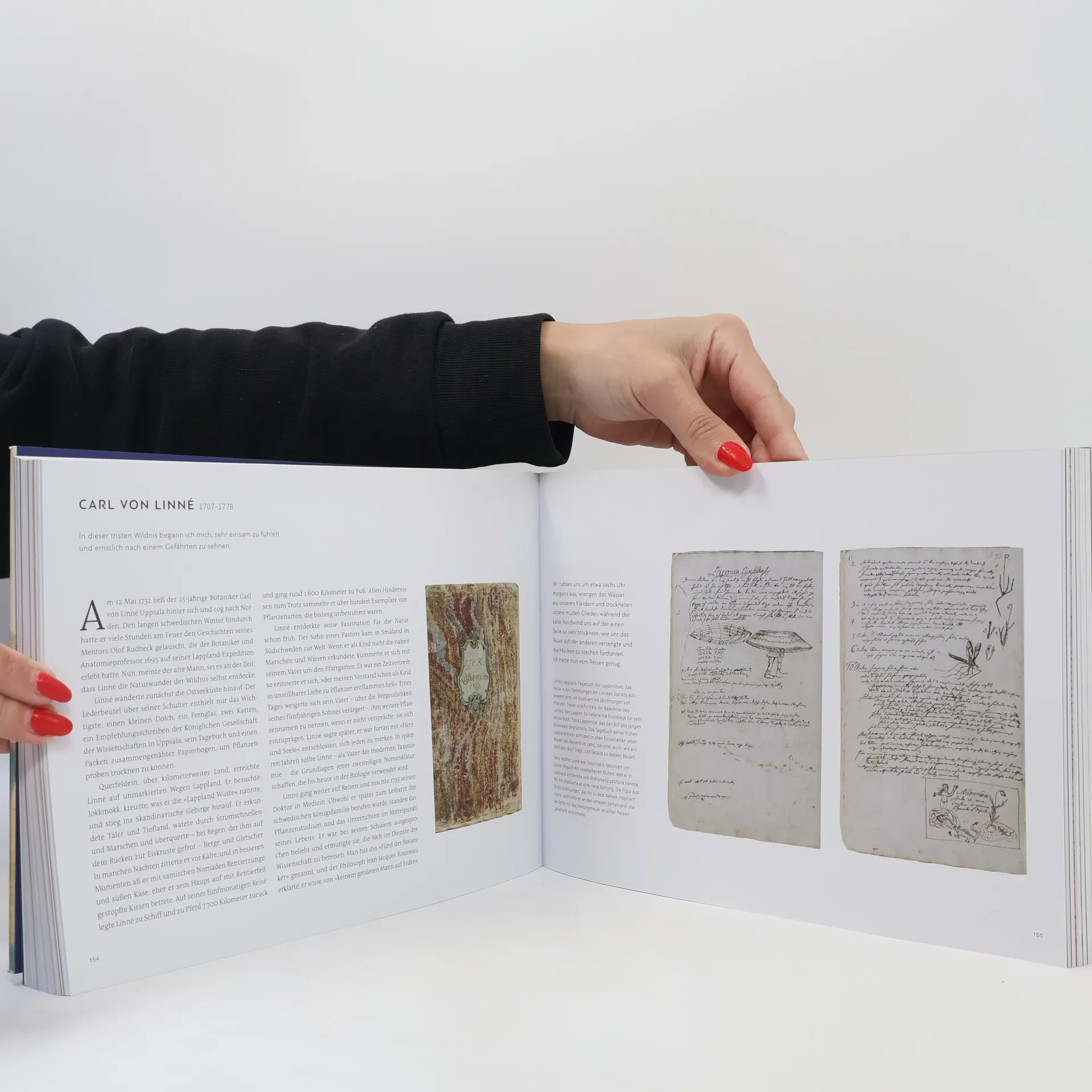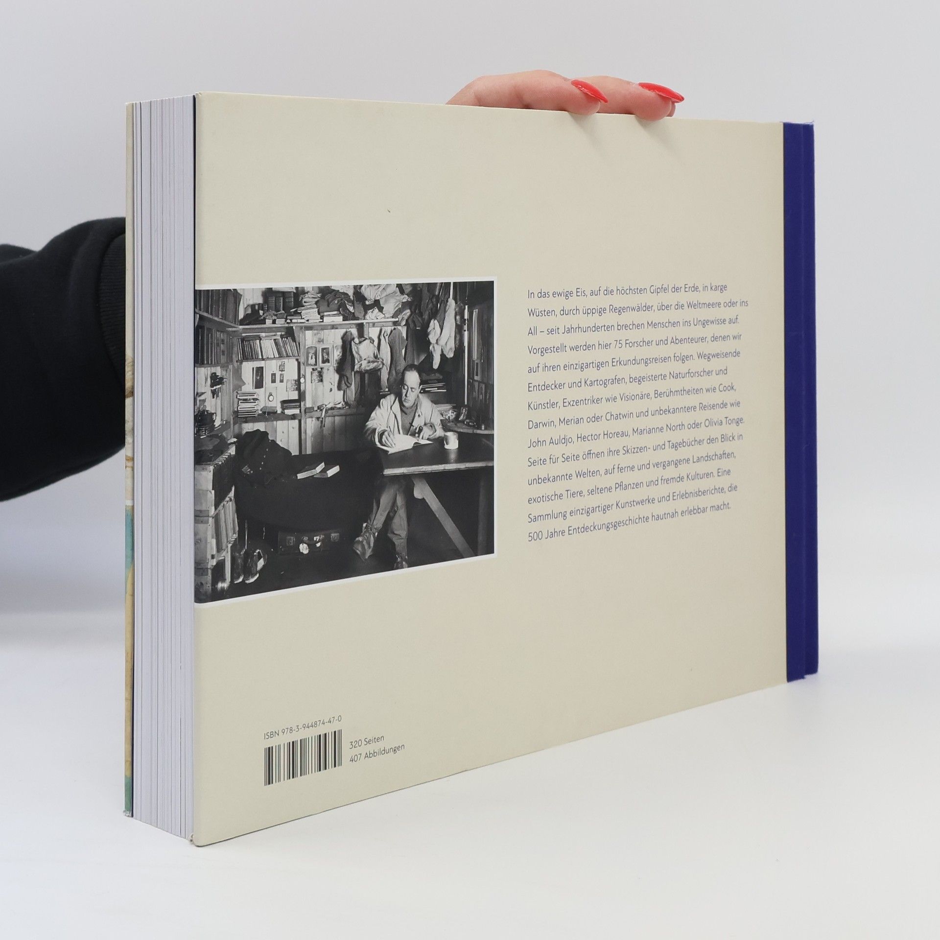 Eine einzigartige Reise durch Zeit und Raum, bei der man 70 Forschern und Entdeckern begegnet. Allesamt unerschrockene Individuen, denen man auf ihren Erkundungen in das ewige Eis, auf die höchsten Gipfel der Erde, in karge Wüstengebiete und durch üppige Regenwälder folgt. Einige davon sind bis heute weltbekannt, andere schon der Vergessenheit anheim gefallen: wegweisende Entdecker und Kartografen, begeisterte Botaniker und Künstler, kundige Naturforscher und Anthropologen, Exzentriker und Visionäre, Männer wie Frauen. Darunter Berühmtheiten wie Cook, Darwin, Merian, Shackleton und Chatwin oder weniger bekannte Forscher wie Breton, Horeau oder North. Dank ihrer Skizzenbücher und Tagebücher können wir durch ihre Augen in eine vergangene Welt blicken. Die Skizzen, Bilder, Karten, Aquarelle, ob im Miniaturformat oder in der Größe von Elefantenfolianten, mit Bleistift, Rötel oder Wasserfarben festgehalten, zeugen von der Meisterschaft der Künstler. Einzigartige Dokumente, die sonst in wohltemperierten Archivräumen, in Bibliotheken, Privatsammlungen oder auf verstaubten Dachkammern die Zeit überdauert haben, sind hier in dieser Breite oder erstmals für die Öffentlichkeit zugänglich.