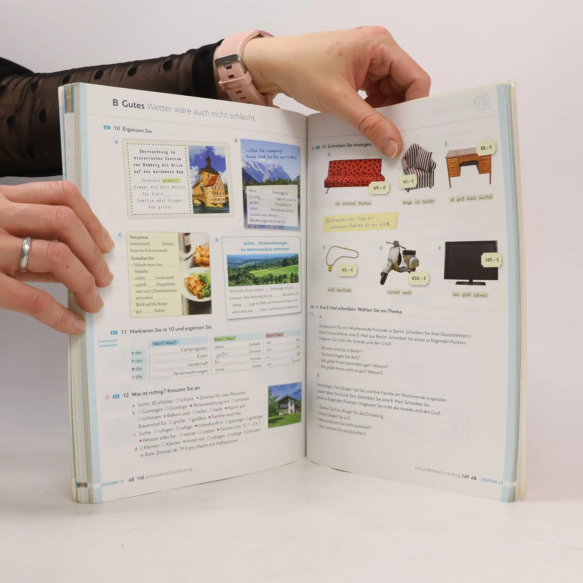 Zielniveau A2.2 - alle Lektionen folgen einem klaren Aufbau für hohe Lerntransparenz - neue Foto-Hörgeschichten als Einstieg in jede Lektion - interessante Texte und vielfältige Landeskunde - induktive Grammatik fördert Bewusstmachung und Verständnis - Vorbereitung auf den Berufsalltag durch verstärkten Berufsbezug - Stärkung der Lernerautonomie durch eine Doppelseite zu Grammatik und Redemitteln mit Übungen und Lernhilfen am Ende jeder Lektion - Transparenz durch Lernziele mit der Möglichkeit zur Selbsteinschätzung - flexible Ergänzung der Lektionsinhalte durch die „Zwischendurch mal …-Seiten“