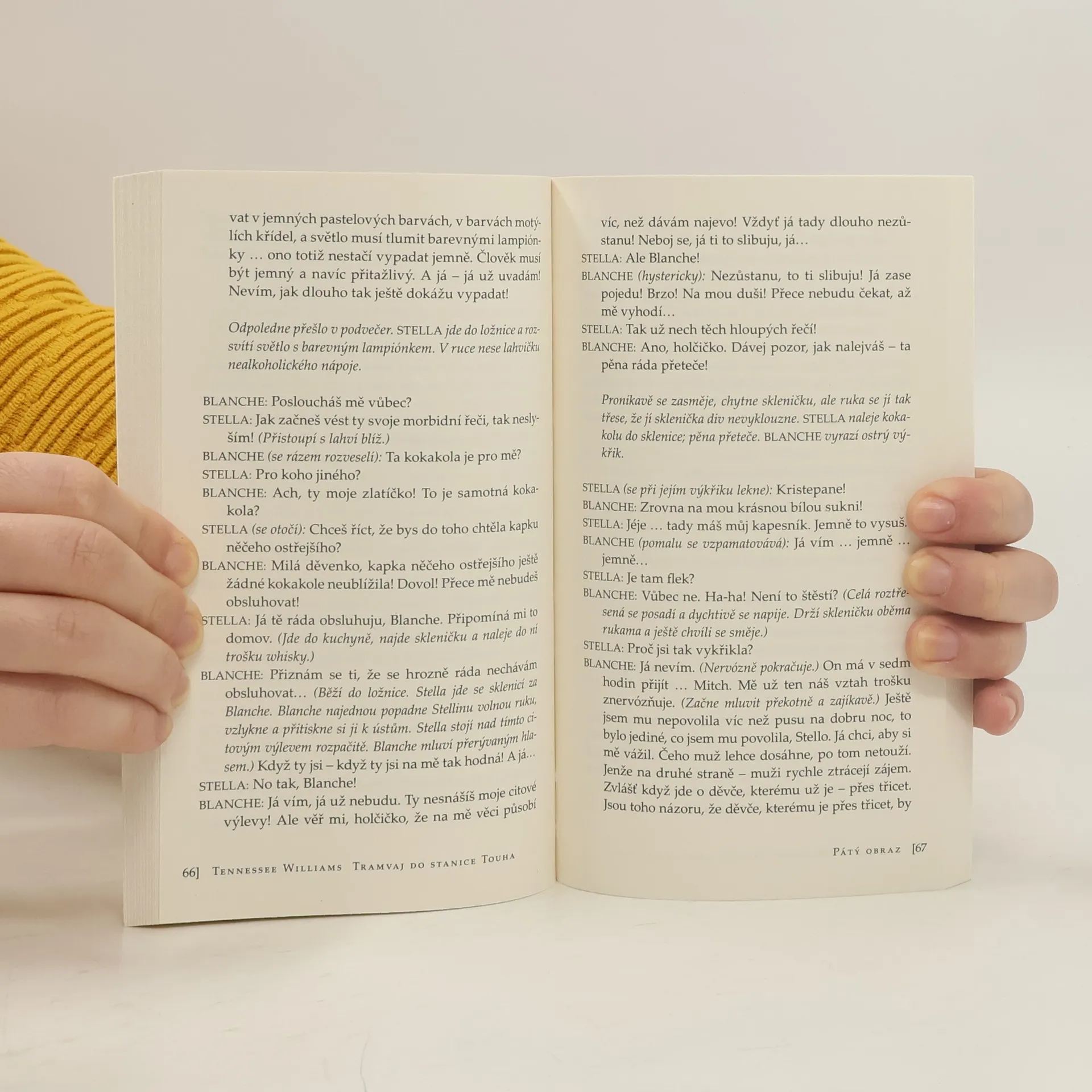 Vrcholné dílo moderního amerického psychologického dramatu z roku 1947. Příběh odehrávající se po válce ve francouzské čtvrti New Orelansu sleduje hluboce niterný život citlivé a iluzí plné Blanche DuBoisové, přijíždějící navštívit svou vitální sestru Stellu, která se provdala za primitivního hrubce Stanleyho Kowalského. Ve chvíli kdy si žena poznamenaná smrtí homosexuálního manžela myslí, že našla štěstí v novém vztahu, dojde k zborcení veškerých iluzí.