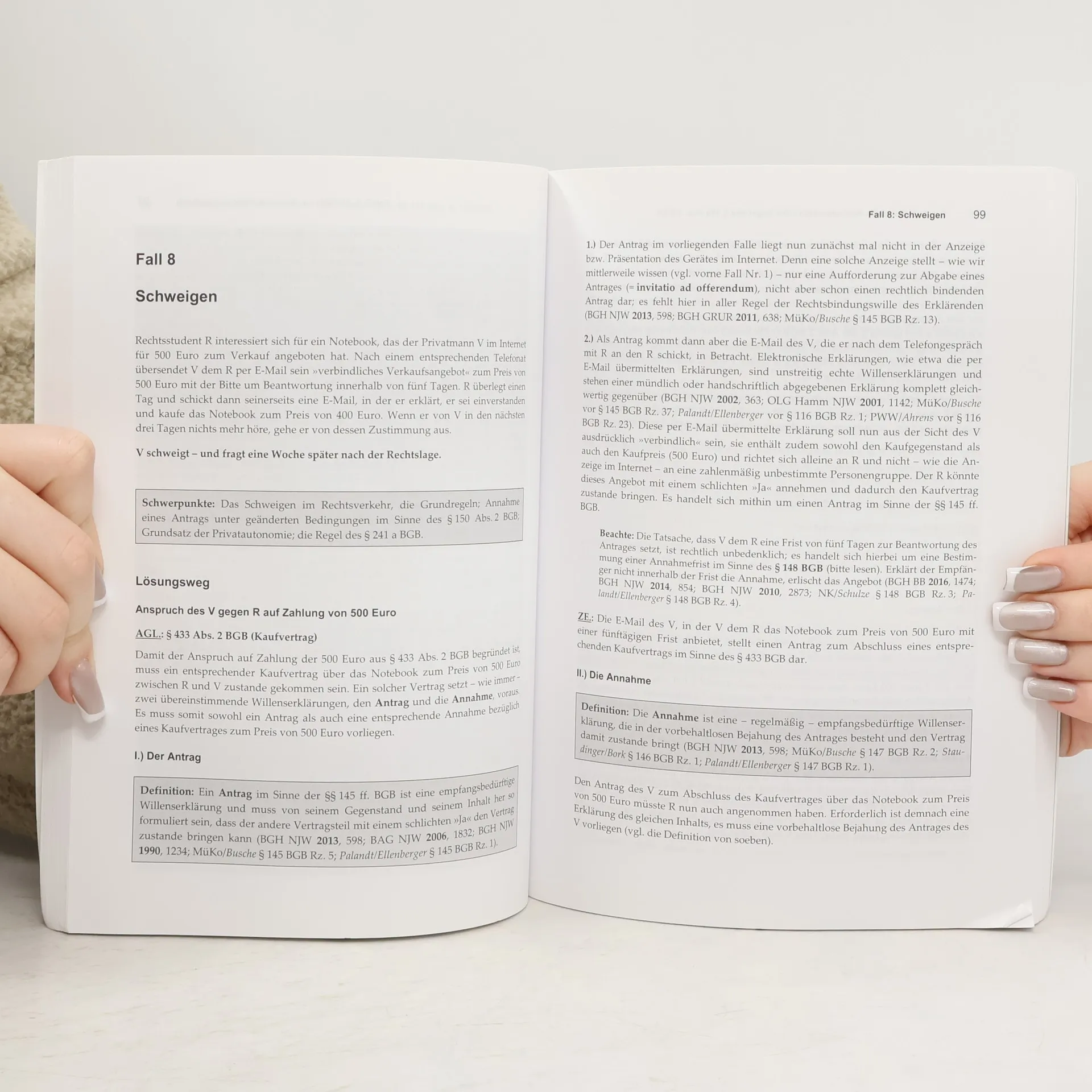 Klausurrelevante Themen Das Buch stellt die prüfungsrelevanten Themen und Probleme des Allgemeinen Teils des BGB verständlich dar. Fälle zum BGB Sie begreifen anhand der Fälle die Strukturen und die materiell-rechtlichen Fragestellungen aus dem Allgemeinen Teil des BGB. Schritt für Schritt zur Musterlösung Umfassende Lösungsskizzen zum jeweiligen Fall zeigen Ihnen Schritt für Schritt den materiell-rechtlichen Weg zum Ergebnis auf. Dann folgen ausformulierte Musterlösungen. Exakter Gutachtenstil Die jeweilige Musterlösung im Gutachtenstil erklärt, wie Sie den gerade erlernten Stoff in der Klausur oder Hausarbeit richtig darstellen: Richtig subsumieren Passende Formulierungen beim Gutachten verwenden Wichtiges von Unwichtigem trennen Fehler bei der Darstellung vermeiden Einen Meinungsstreit zutreffend behandeln und lösen Erfolgreiche Hausarbeits- und Klausurtechnik Das Buch vermittelt die notwendige Technik, um das erworbene Wissen vernünftig zu Papier zu bringen. So schreiben Sie erfolgreich Ihre nächste Klausur oder Hausarbeit. Für Anfänger und Fortgeschrittene Die Fallsammlung richtet sich vorrangig an Anfänger, die eine umfassende und klausurnahe Einarbeitung in die Materie erhalten. Fortgeschrittene und Examenskandidaten können anhand der Fälle ihr Wissen überprüfen, vertiefen und auf den neuesten Stand bringen.