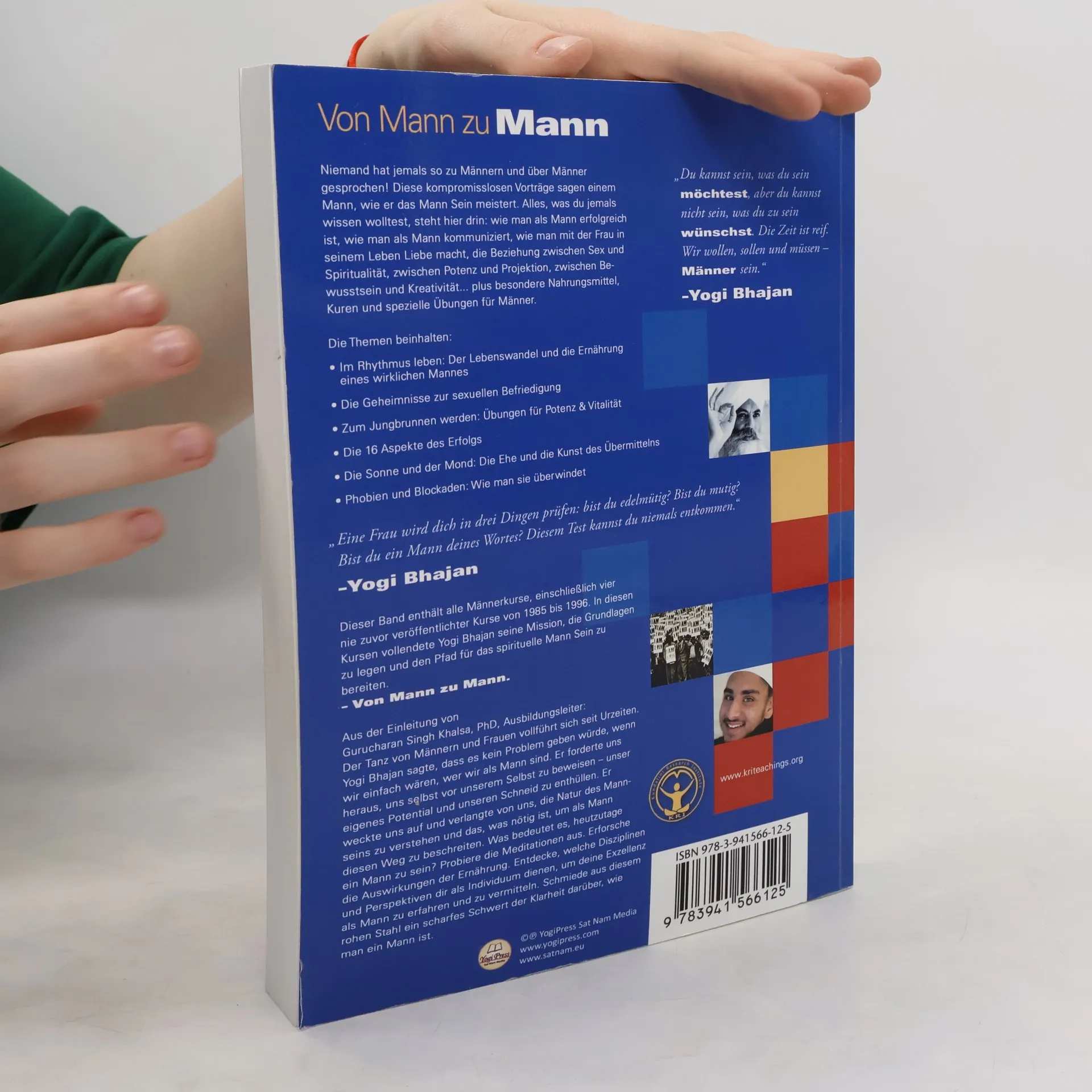 Niemand hat jemals so zu Männern und über Männer gesprochen wie Yogi Bhajan in diesem aussergewöhnlichen Werk! Die kompromisslosen Vorträge bieten Männern wertvolle Einsichten, um das Mann-Sein zu meistern. Hier erfährst du alles über Erfolg, Kommunikation, Liebe, die Beziehung zwischen Sex und Spiritualität sowie spezielle Nahrungsmittel und Kundalini Yoga-Übungen für Männer. Die Themen umfassen: den Lebenswandel und die Ernährung eines echten Mannes, Geheimnisse zur sexuellen Befriedigung, Kundalini Yoga-Übungen für Potenz und Vitalität, die 16 Aspekte des Erfolgs, die Ehe und die Kunst des Übermittelns sowie den Umgang mit Phobien und Blockaden. Yogi Bhajan stellt fest, dass Frauen Männer in drei Dingen prüfen: Edelmut, Mut und Verlässlichkeit. Das Buch enthält alle Männerkurse, darunter vier unveröffentlichte Kurse von 1985 bis 1996, in denen Yogi Bhajan den Weg für das spirituelle Mann-Sein ebnete. Gurucharan Singh Khalsa, PhD, betont, dass Yogi Bhajan uns herausfordert, unser Potenzial zu erkennen und die Natur des Mannseins zu verstehen. Ermutige dich selbst, die Meditationen auszuprobieren, die Auswirkungen der Ernährung zu erforschen und Disziplinen zu entdecken, die dir helfen, deine Exzellenz als Mann zu entfalten. „Die Zeit ist reif. Wir wollen, sollen und müssen – Männer sein.“