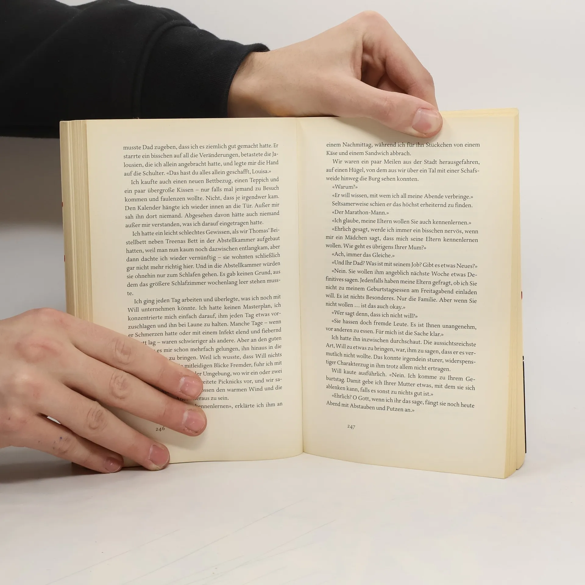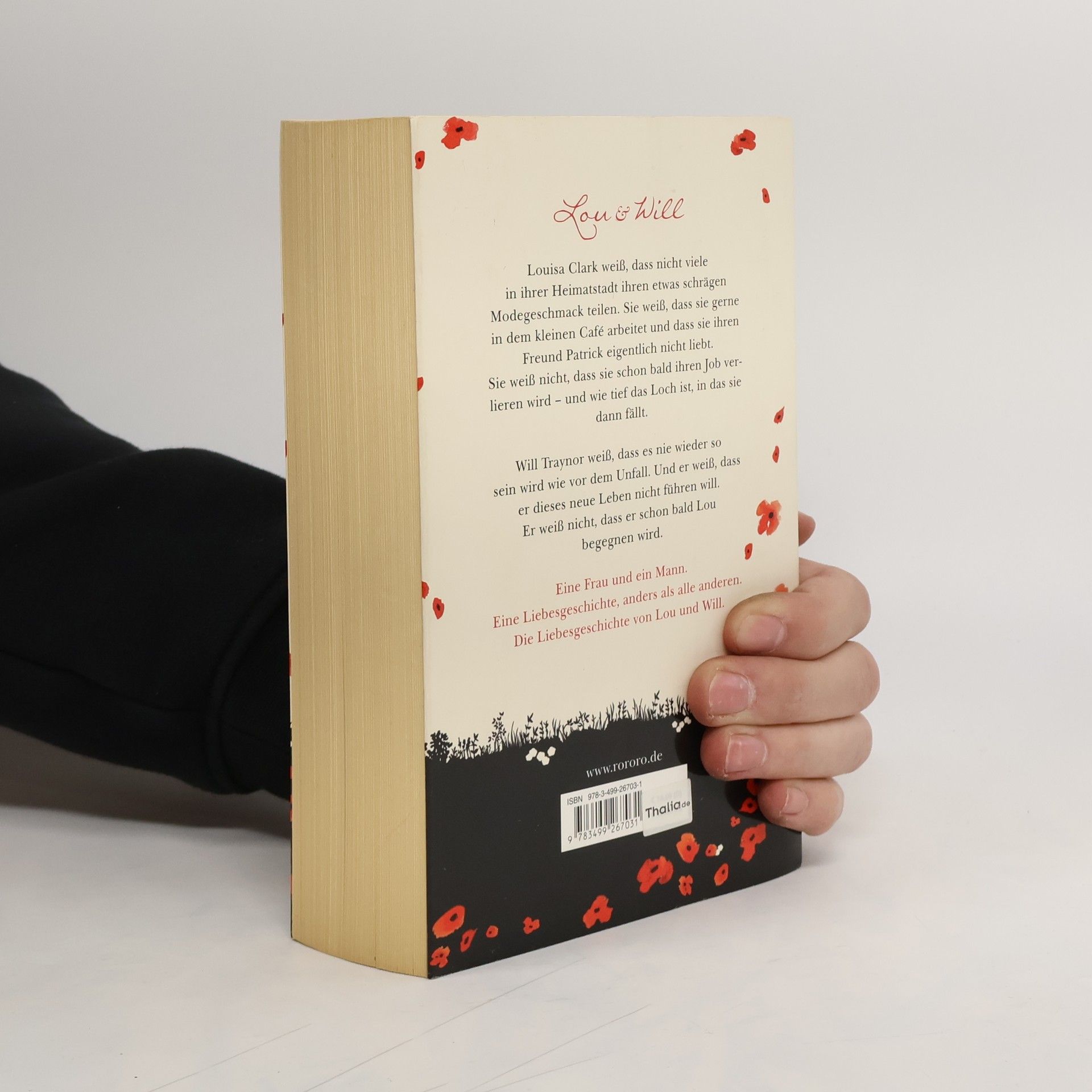 Lou & Will. Louisa Clark weiß, dass nicht viele in ihrer Heimatstadt ihren etwas schrägen Modegeschmack teilen. Sie weiß, dass sie gerne in dem kleinen Café arbeitet und dass sie ihren Freund Patrick eigentlich nicht liebt. Sie weiß nicht, dass sie schon bald ihren Job verlieren wird – und wie tief das Loch ist, in das sie dann fällt. Will Traynor weiß, dass es nie wieder so sein wird wie vor dem Unfall. Und er weiß, dass er dieses neue Leben nicht führen will. Er weiß nicht, dass er schon bald Lou begegnen wird. Eine Frau und ein Mann. Eine Liebesgeschichte, anders als alle anderen. Die Liebesgeschichte von Lou und Will.