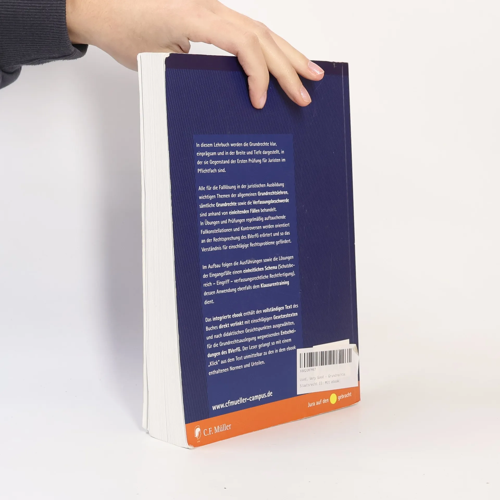Das bewährte Konzept: In nun schon 34. Auflage lehrt der Band die Grundrechte in der Breite und Tiefe, in der sie Gegenstand der Ersten Juristischen Prüfung sind. Alle für die Falllösung in Ausbildung und Prüfung wichtigen Themen der allgemeinen Grundrechtslehren, sämtliche Grundrechte sowie die Verfassungsbeschwerde als das einschlägige Verfahrensrecht werden anhand von Fällen behandelt. Aktuelle Entwicklungen wie die wachsende Bedeutung der überstaatlichen Grundrechte und die grundrechtliche Schutzfunktion sind ebenfalls eingehend dargestellt. Im Aufbau folgen die Ausführungen sowie die Lösungen der Eingangsfälle einem einheitlichen Aufbauschema, das dem Klausurentraining dient. Die Neuauflage beinhaltet - wie bereits in der Vorauflage - auch das ebook des Grundrechtsklassikers: Dieses enthält den vollständigen Text des Buches direkt verlinkt mit einschlägigen Gesetzestexten und nach didaktischen Gesichtspunkten ausgewählten, für die Grundrechtsauslegung wegweisenden Entscheidungen des BVerfG. Der Leser gelangt so mit einem „Klick“ aus dem Text unmittelbar zu den in dem ebook enthaltenen Normen und Urteilen. Das Autorenteam hat das Lehrbuch entsprechend der Entwicklung von Grundrechtsrechtsprechung und -literatur eingehend überarbeitet und auf den Stand von Juli 2018 gebracht.