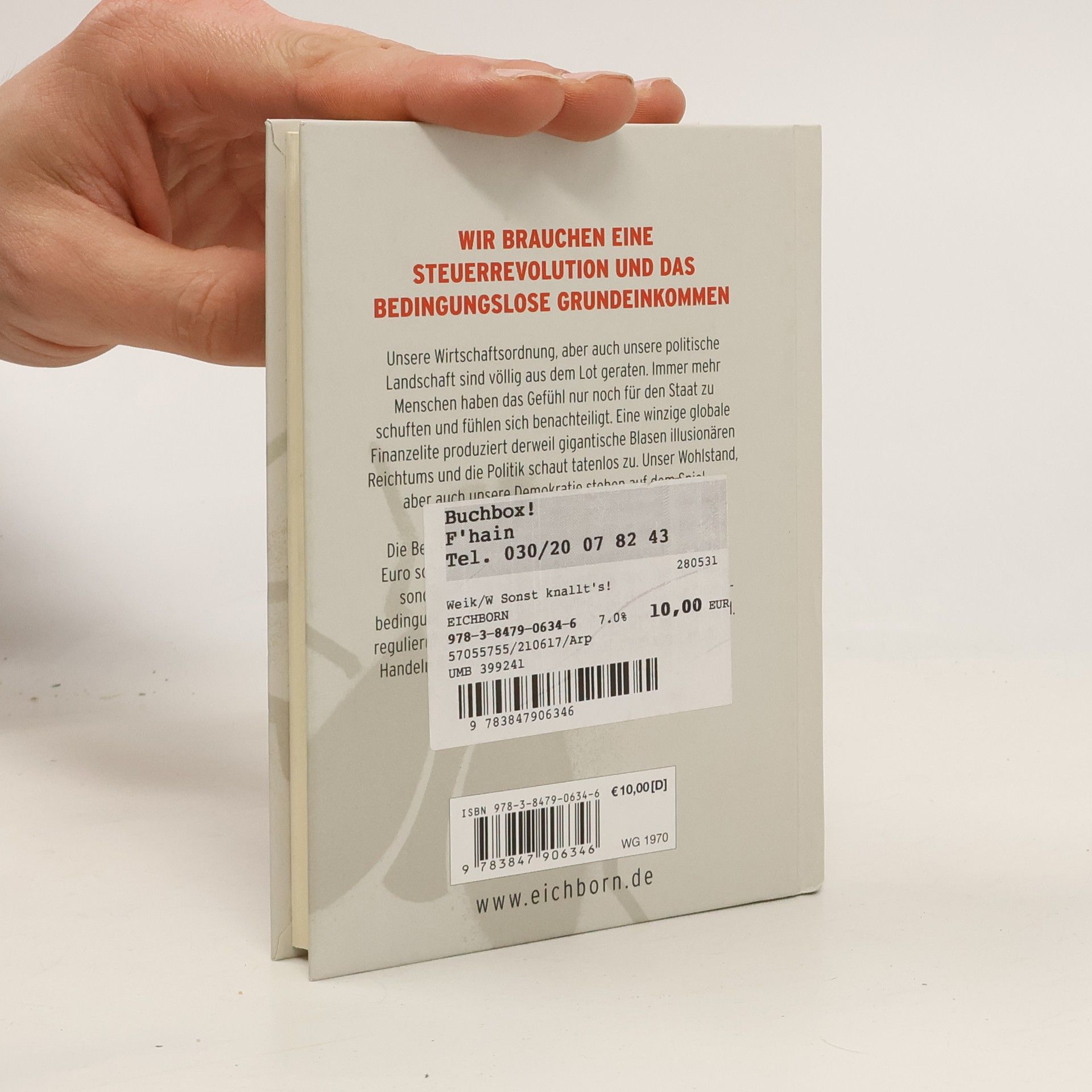 Unsere Wirtschaftsordnung, aber auch unsere politische Landschaft sind völlig aus dem Lot geraten. Immer mehr Menschen haben das Gefühl nur noch für den Staat zu schuften und fühlen sich benachteiligt. Die Steuern sprudeln, aber die Infrastruktur verfällt. Unser Bildungssystem: eine chaotische Dauerbaustelle. Eine winzige globale Finanzelite produziert derweil gigantische Blasen illusionären Reichtums. Die Bestsellerautoren, warum wir künftig nicht Leistung, sondern den Konsum besteuern müssen. Warum ein bedingungsloses Grundeinkommen, Gemeingüter und eine strikte Finanzregulierung sozial gerecht und ökonomisch vernünftig sind. Handeln wir jetzt, bevor es zu spät ist!
