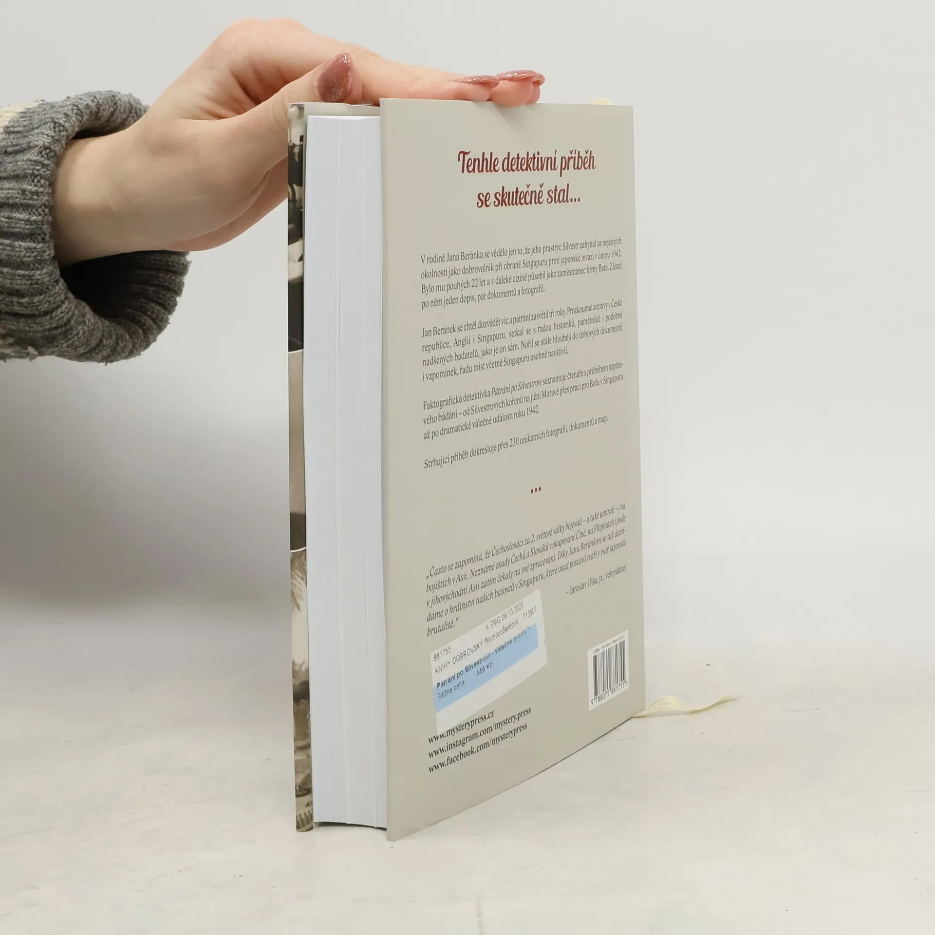 TENHLE DETEKTIVNÍ PŘÍBĚH SE SKUTEČNĚ STAL… Autorův prastrýc Silvestr Němec se narodil v jihomoravských Vémyslicích a v devatenácti letech odjel jako zaměstnanec firmy Baťa do Singapuru. Zde, tak daleko od domova, ho zastihly válečné události a Silvestr zahynul za nejasných okolností jako dobrovolník při obraně Singapuru proti japonské invazi v únoru 1942. Jan Beránek se chtěl dozvědět víc a tři roky zasvětil zkoumání Silvestrových osudů a okolností jeho smrti. Takřka detektivní pátrání ho přivedlo do archivů ve Zlíně, Znojmě a Praze, ale i v Londýně a Singapuru. S pomocí dalších historiků a pamětníků se mu podařilo shromáždit řadu unikátních fotografií a dosud nepublikovaných dokumentů, včetně deníků a vzpomínek několika singapurských baťovců. Kniha popisuje autorovo pátrání od prvních okamžiků, čtenář se postupně seznámí se Silvestrovým rodinným zázemím, s prací u Bati i podmínkami, za jakých stovky mladých pracovníků vyrážely do exotické ciziny. Největší pozornost je samozřejmě věnována Silvestrovu působení v Singapuru a dramatickým událostem, které vedly až k jeho předčasné smrti. O ní na základě dochovaných pramenů, hovorů s potomky pamětníků, spekulací i zkušeností z osobní návštěvy Singapuru Jan Beránek nakonec zjistil více, než zpočátku doufal…