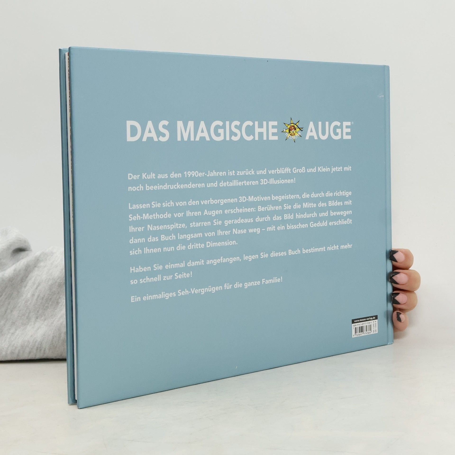 Entdecken Sie optische Illusionen in der dritten Dimension! Der Riesenerfolg ist zurück: Das magische Auge verblüfft die Fans der optischen Illusionen erneut! Wie funktionieren die optischen Illusionen noch gleich? Nasenspitze ganz nah auf das Bild platzieren, jetzt ein bisschen geradeaus starren, bis das Bild verschwommen zu sehen ist, nun das Buch langsam von der Nasenspitze entfernen und mit ein bisschen Übung erscheint das verborgene Bild. Wenn aus einem zweidimensionalen Bild ein dreidimensionales wird, hat dies nichts mit Hexerei zu tun, sondern mit dem magischen Auge!