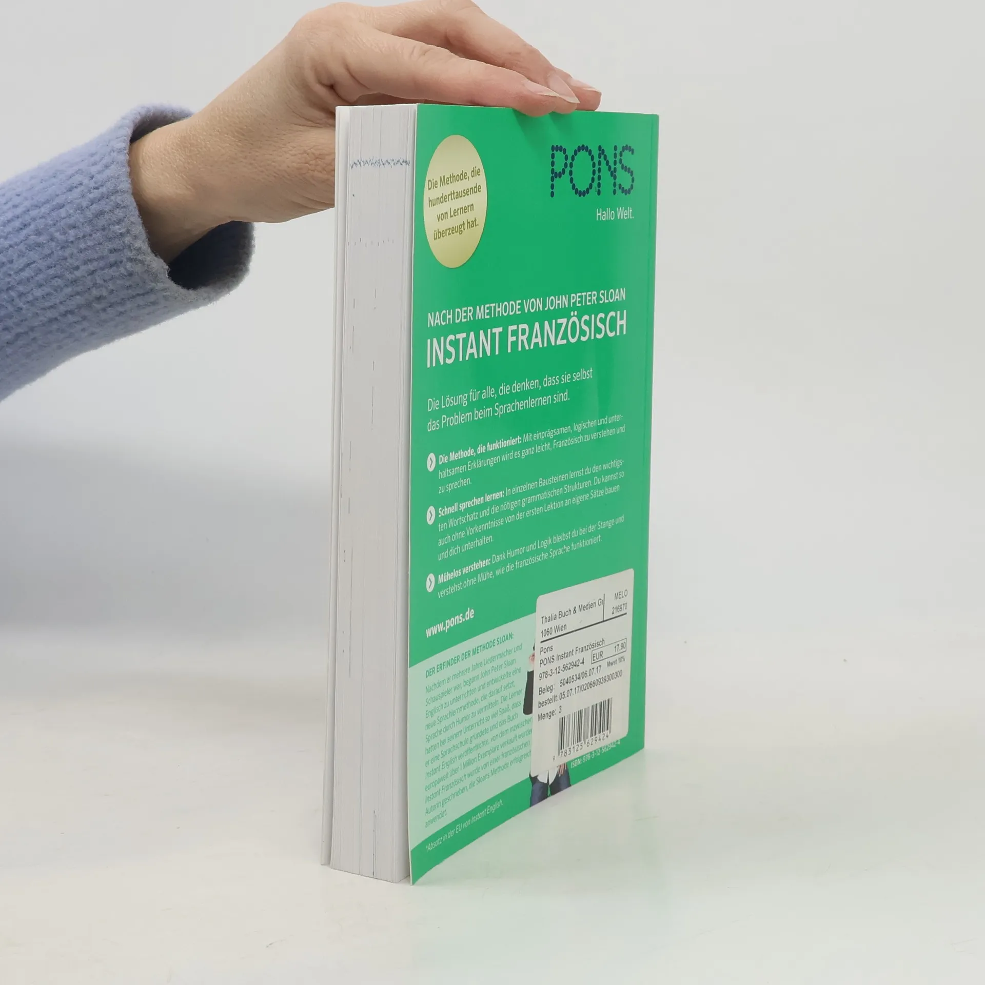 Nach der Methode von John Peter Sloan: Instant Französisch. Die Lösung für alle, die denken, dass sie selbst das Problem beim Sprachenlernen sind. - Die Methode, die funktioniert: Mit einprägsamen, logischen und unterhaltsamen Erklärungen wird es ganz leicht, Französisch zu verstehen und zu sprechen. - Schnell sprechen lernen: In einzelnen Bausteinen lernst du den wichtigsten Wortschatz und die nötigen grammatischen Strukturen. Du kannst so auch ohne Vorkenntnisse von der ersten Lektion an eigene Sätze bauen und dich unterhalten. - Mühelos verstehen: Dank Humor und Logik bleibst du bei der Stange und verstehst ohne Mühe, wie die französische Sprache funktioniert.
